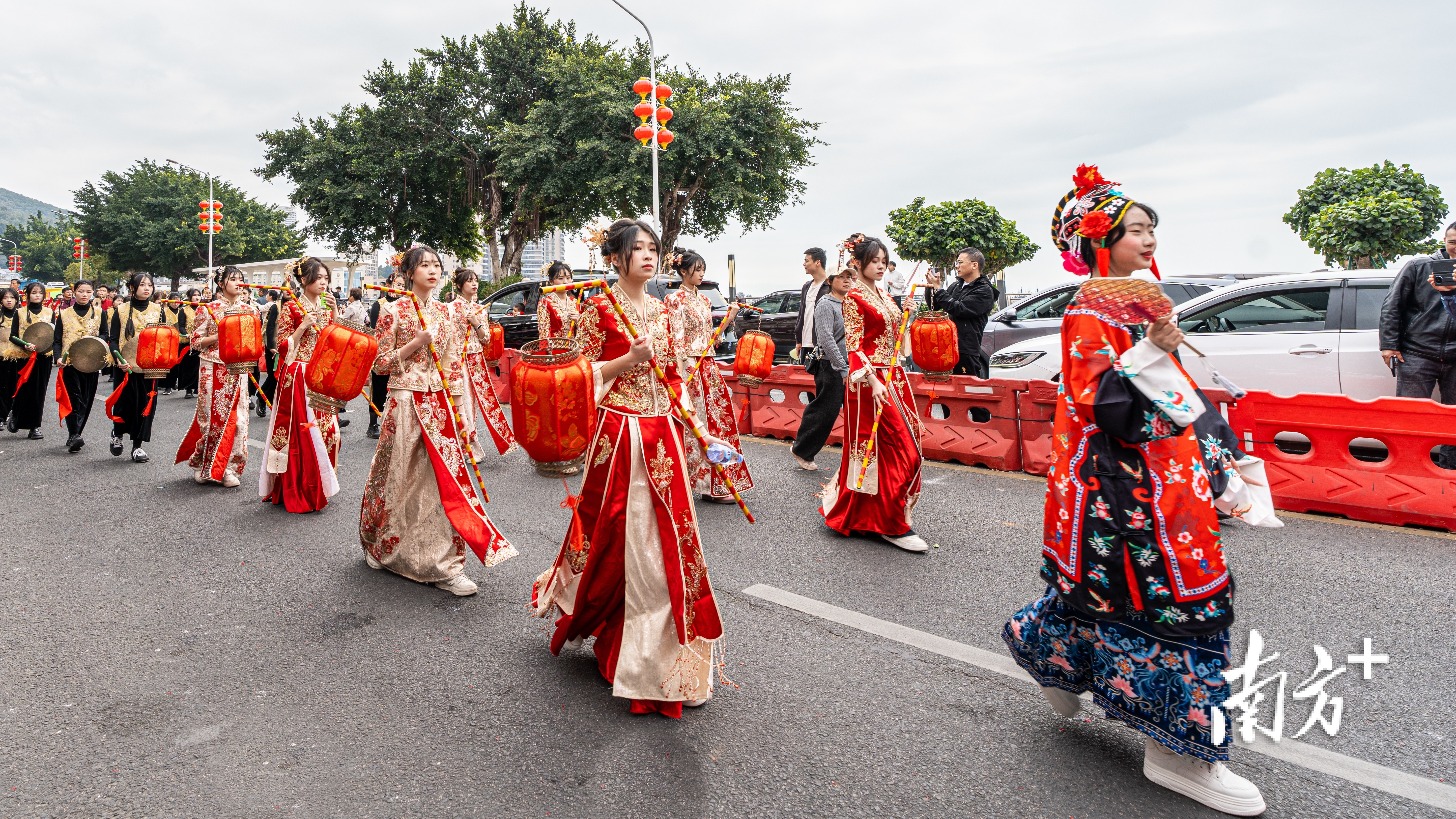 巡游队伍中,百余年历史的南澳车鼓舞集巡游、舞蹈、曲乐于一体,鼓点铿锵、舞姿灵动;造型逼真的海马灯、渔灯摇曳多姿,展现渔家文化独特魅力。舞龙队腾跃翻腾,锣鼓队擂鼓震天,标旗招展指引方向,展现了传统民俗的深厚底蕴。
