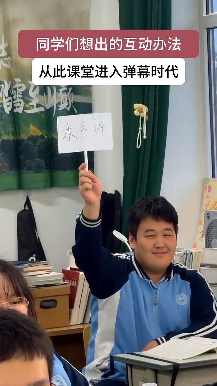 课堂开启举牌“弹幕”模式!网友:简直是“i人福音”