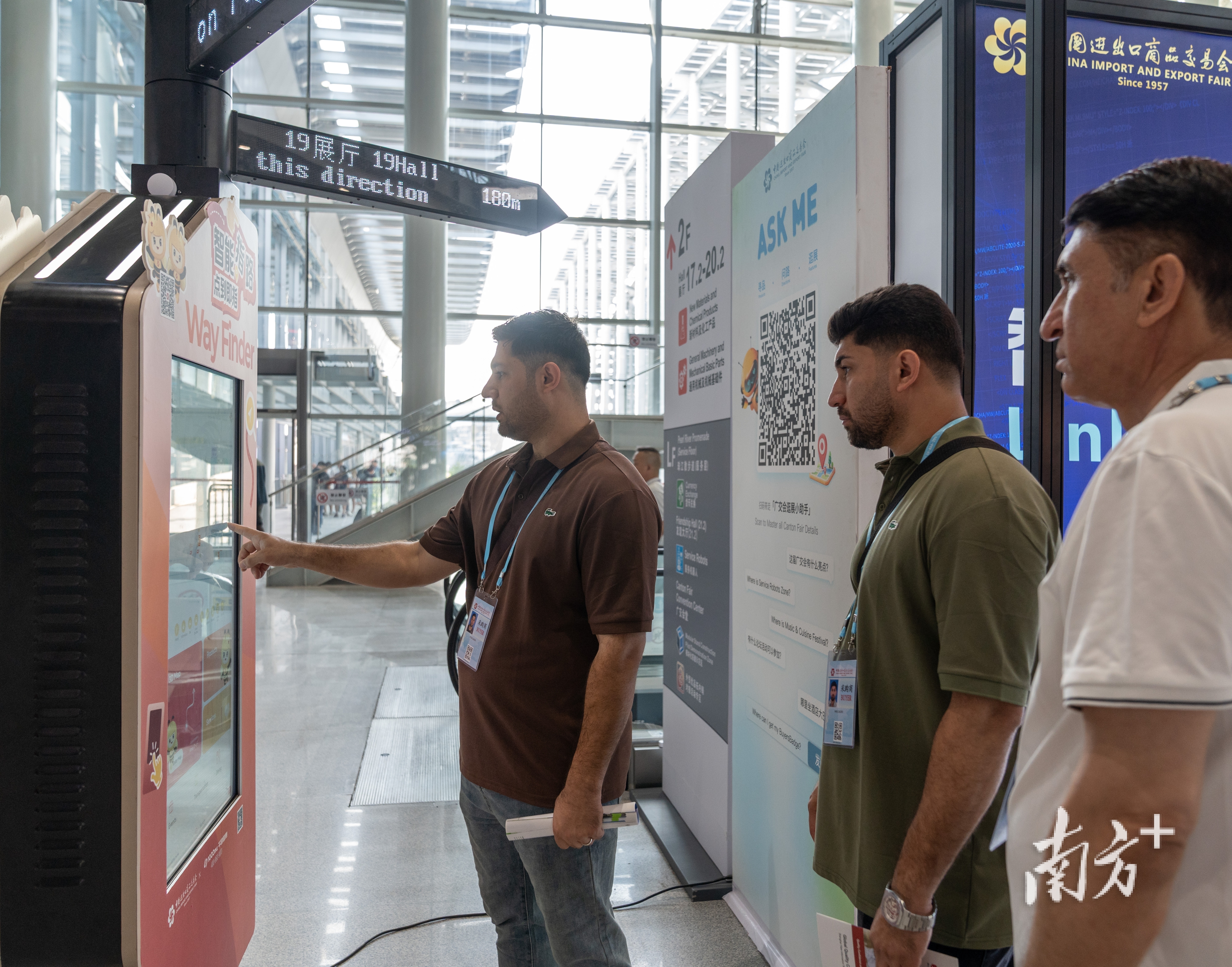 本届广交会展览面积达155万平方米,接近2个故宫的面积,即便是多年“老广交”,依旧难免在偌大的展馆中迷路。为此,智能指路机破解找路难题,其搭载了全新上线的智慧导航服务体系,形成“线上+线下”全覆盖的导航服务网络,成为展客商喜爱的问路对象。
