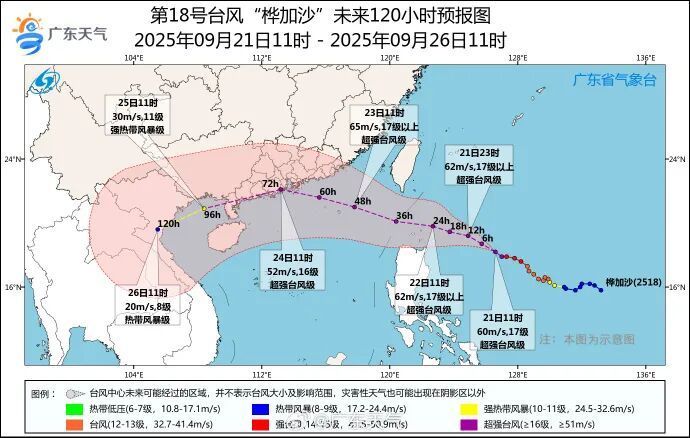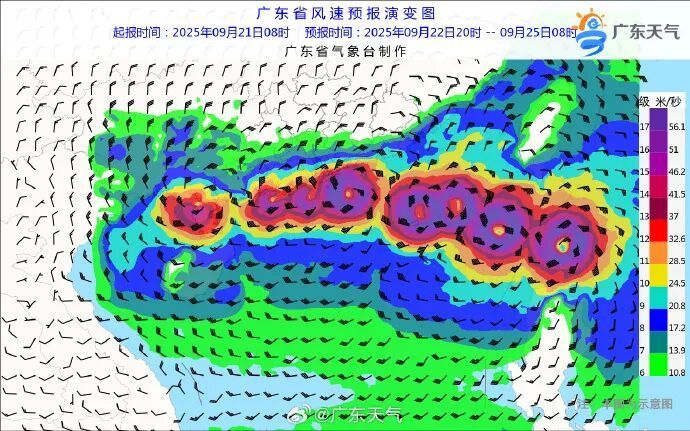 路径方面,前期因为副高引导气流比较清晰,稳定西北行,后期24日前后,副高减弱,北侧冷高压对台风有所压制,导致其偏西分量加大,靠近广东沿海偏西行时,离岸距离近,存在随时登陆、多次登陆的可能,因而登陆时间和地点仍有较大不确定性。