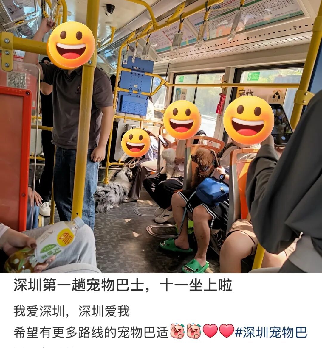 不止如此,深圳公交车的周末时段还曾经推出宠物专线。有人思路大开:“如果我没有宠物,来坐一趟车,不就成了不限时的移动版猫咖狗咖。”