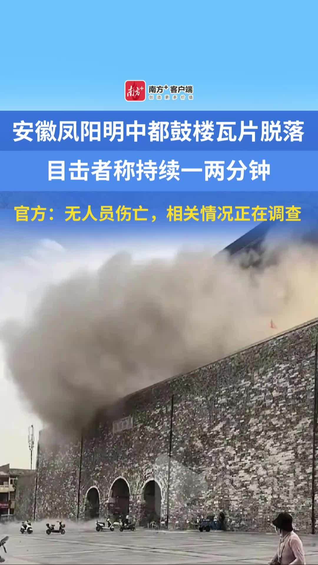安徽凤阳明中都鼓楼瓦片脱落,官方:无人员伤亡