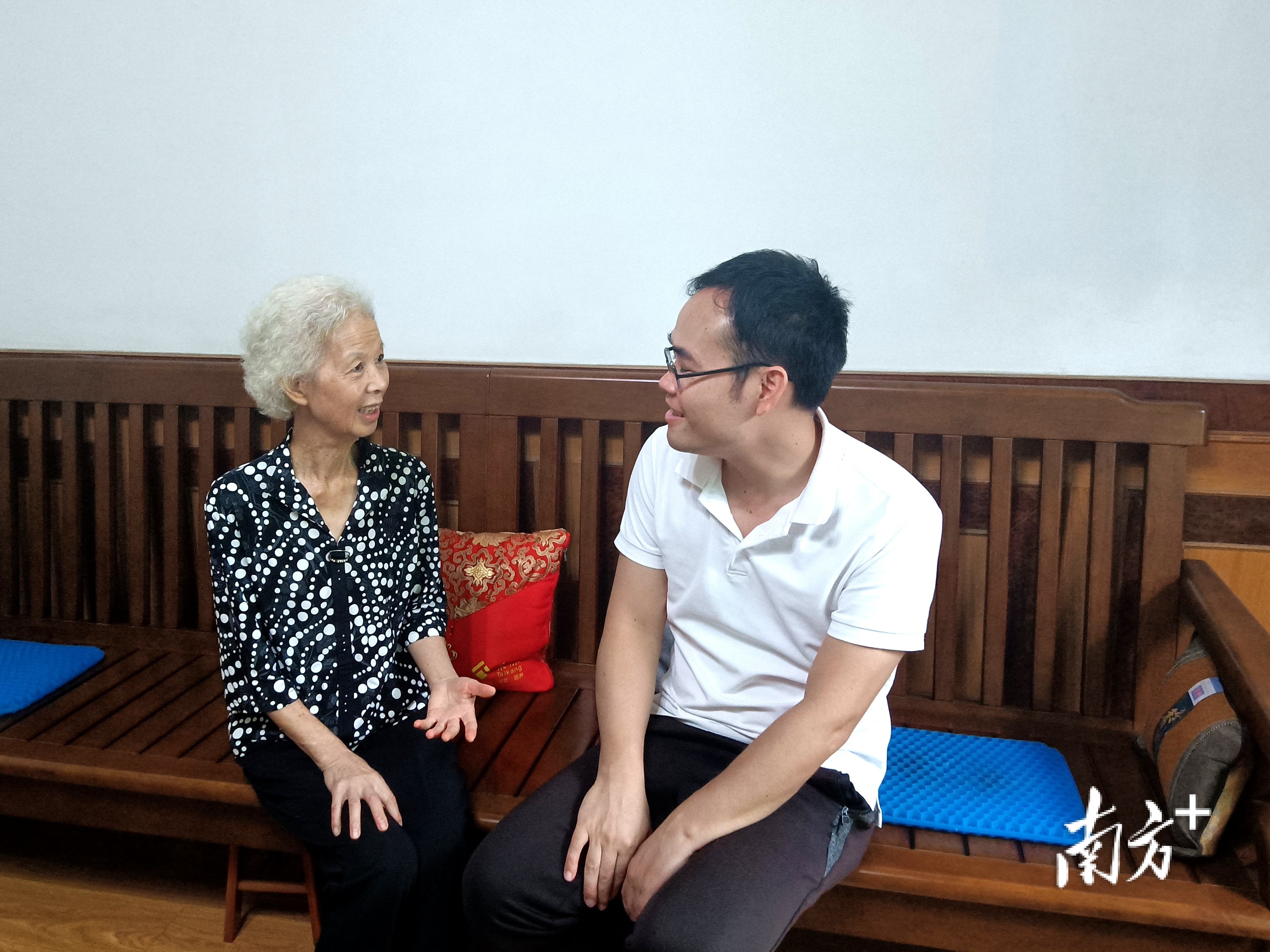 慰问中,工作人员与老干部促膝长谈。余龙辉 摄