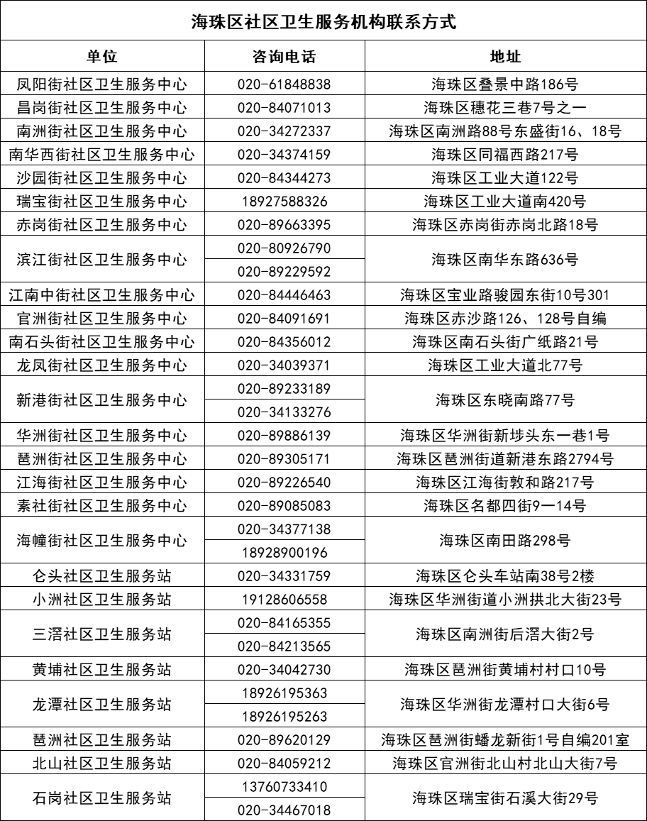 出行前如出现发热、皮疹、关节痛等症状,建议暂缓行程,并及时前往就近的社区卫生服务机构就诊。社卫机构对登革热、基孔肯雅热筛查开辟有绿色通道。如在旅途中或返穗后出现上述症状,请主动就医并如实告知旅居史,以便早诊断、早治疗。