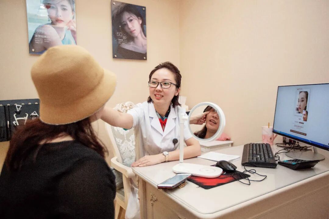 一家韩国公司设在海南的医疗美容部内,工作人员为客户定制“私人美容方案”。图/视觉中国