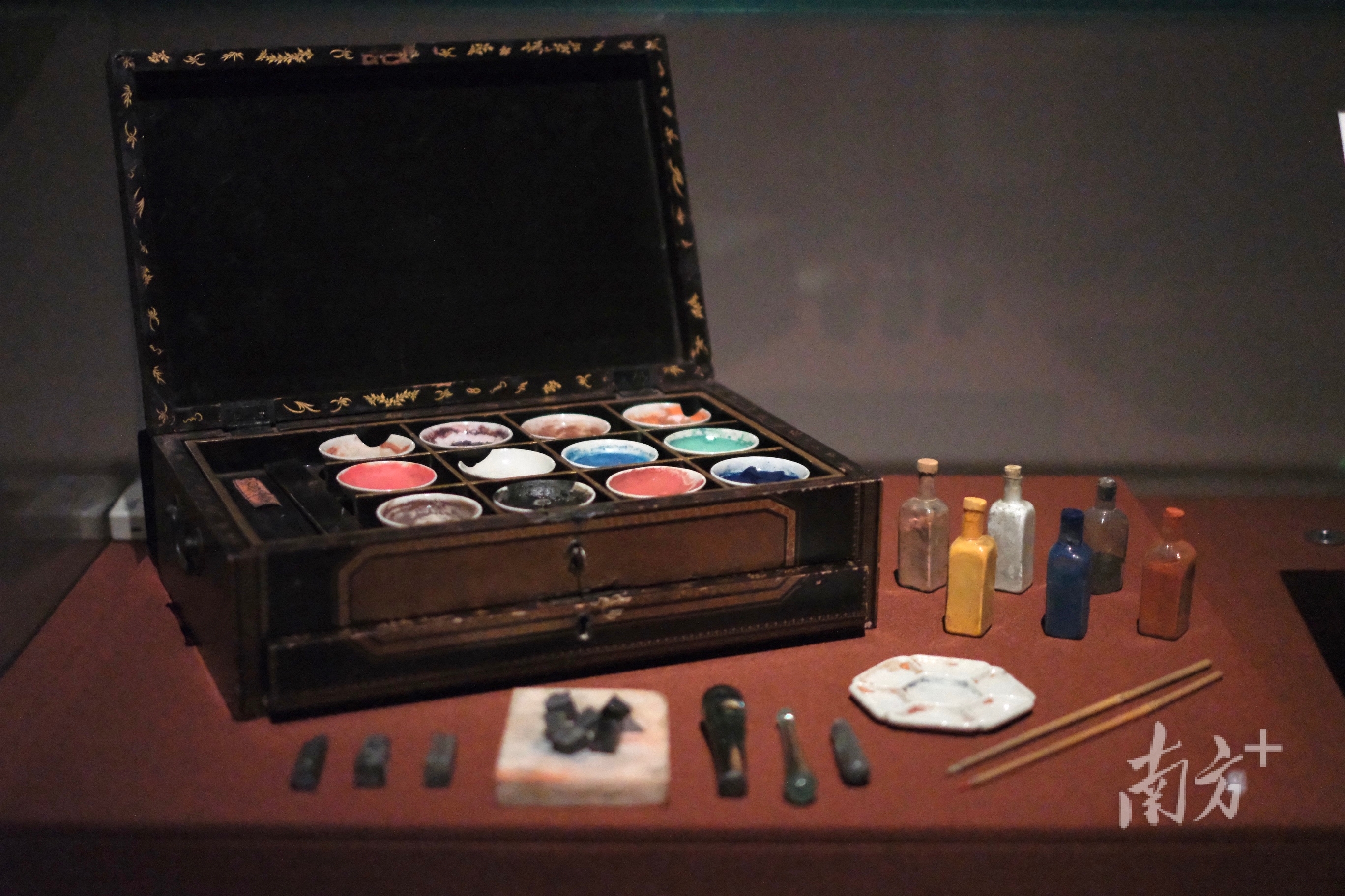 记者注意到,展览中有不少来自香港的藏品,如香港艺术馆馆藏的关联昌绘油画,就还原了当年广州漆器店的景象;香港海事博物馆藏的上漆颜料盒则为观众展示了漆器制作的过程。“这批漆器有很多展品是广东省博物馆首次展出,同时我们面向海内外借展了多件珍贵展品,也受到了全球博物馆圈的大力支持。”白芳说。