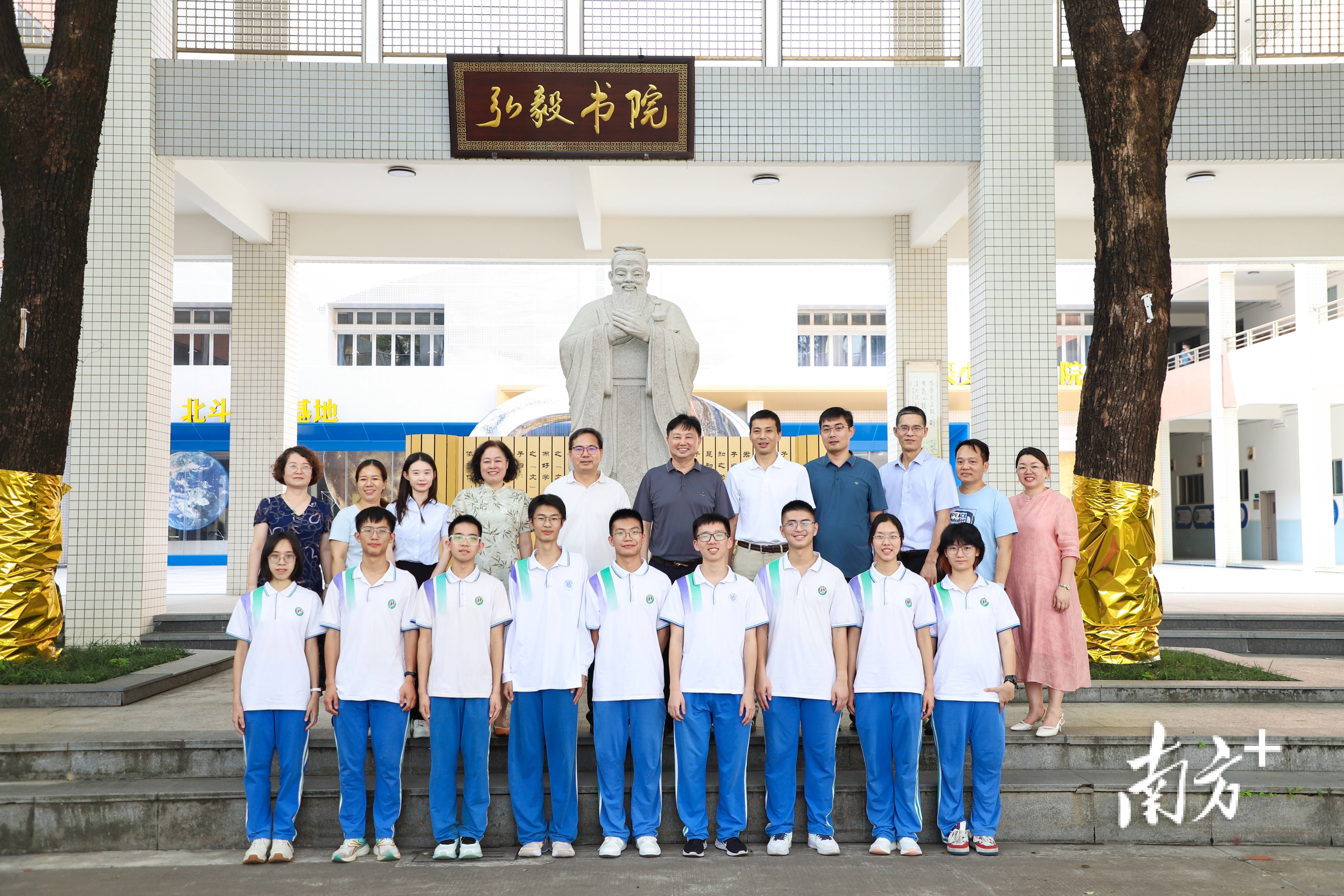 中山市华辰实验中学部分优秀毕业生与老师合影。