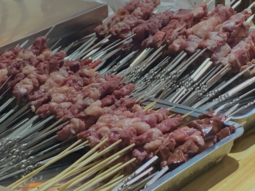 随意寻一处露天烧烤摊,除了羊肉之外,羊的心、肝、脾、肾、肠、筋等都是烧烤的好材料。此处特别提醒,虽然内脏的普遍价格低于肉,但“腰子”(羊肾)是个特例,一定要看清楚价格再点。