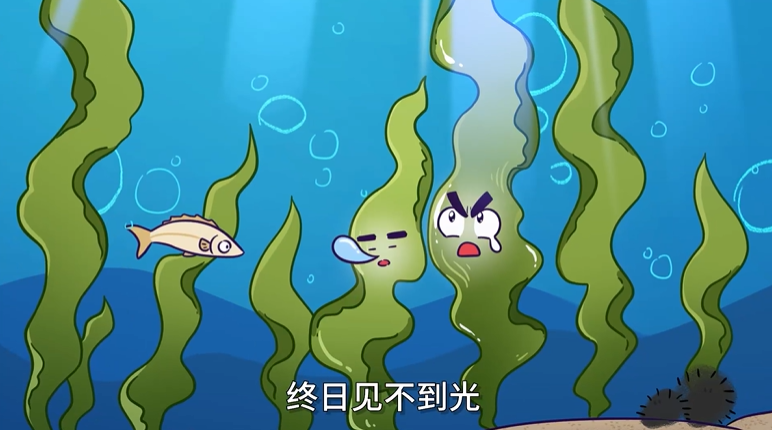 想当年,海带生长在海里,终日不见光。