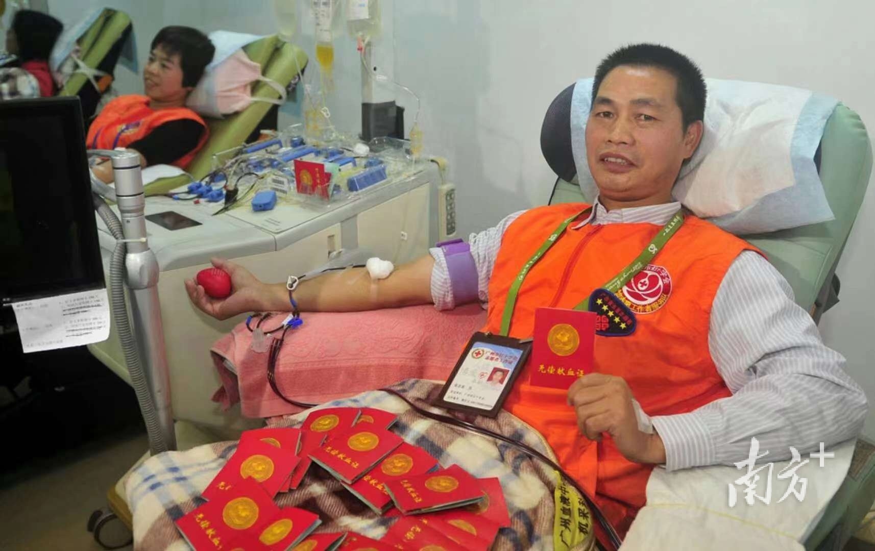 广州市无偿献血志愿工作者服务队队长吴言东便是其中之一。自1999年6月起,吴言东每年坚持参加献血,25年来,他先后献血共计300次,献血总量累计118800毫升。