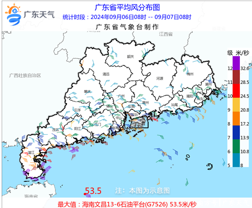 7日早晨起,风力有所减弱,粤西海面和沿海平均风8~10级、阵风9~11级。