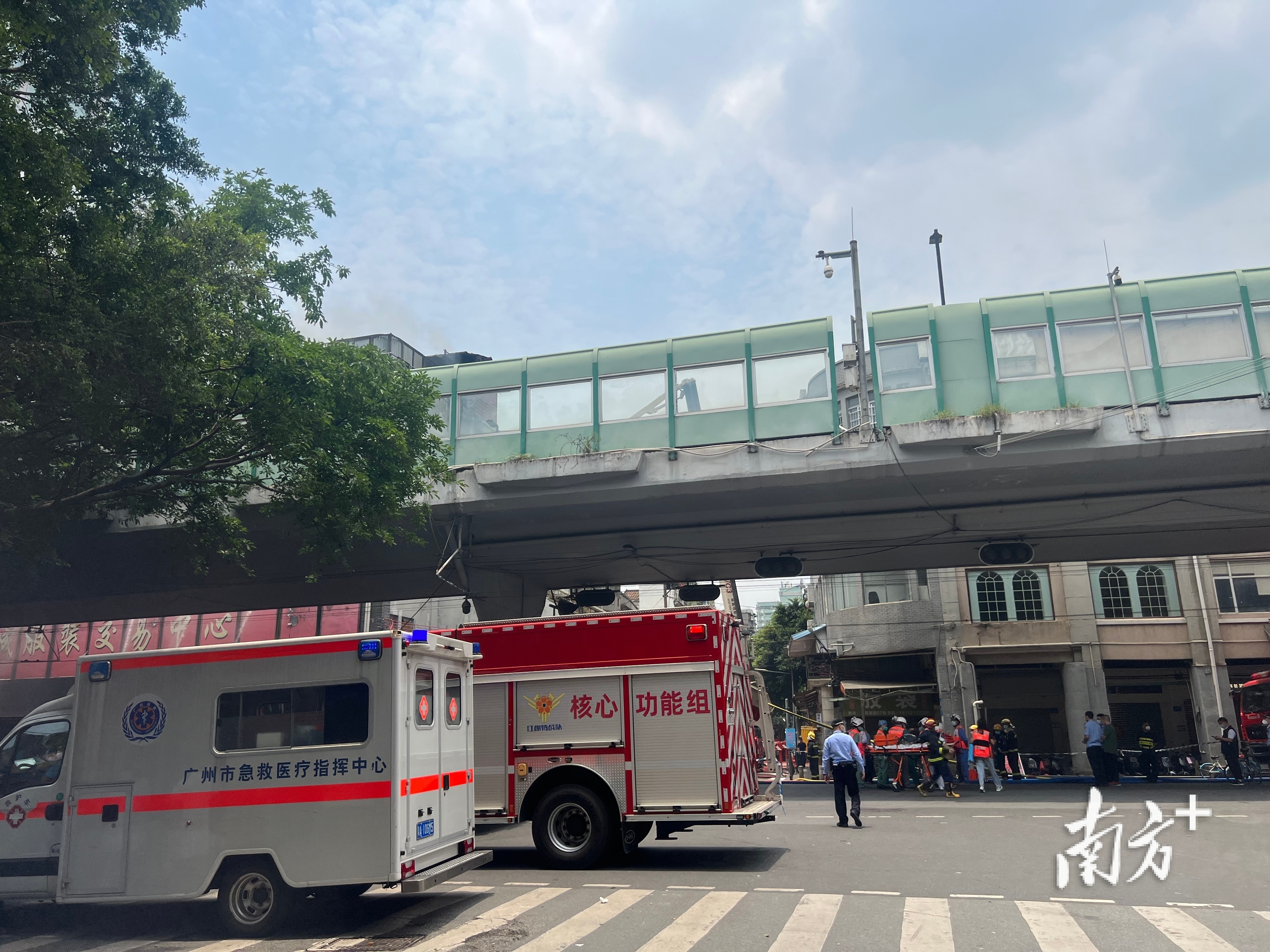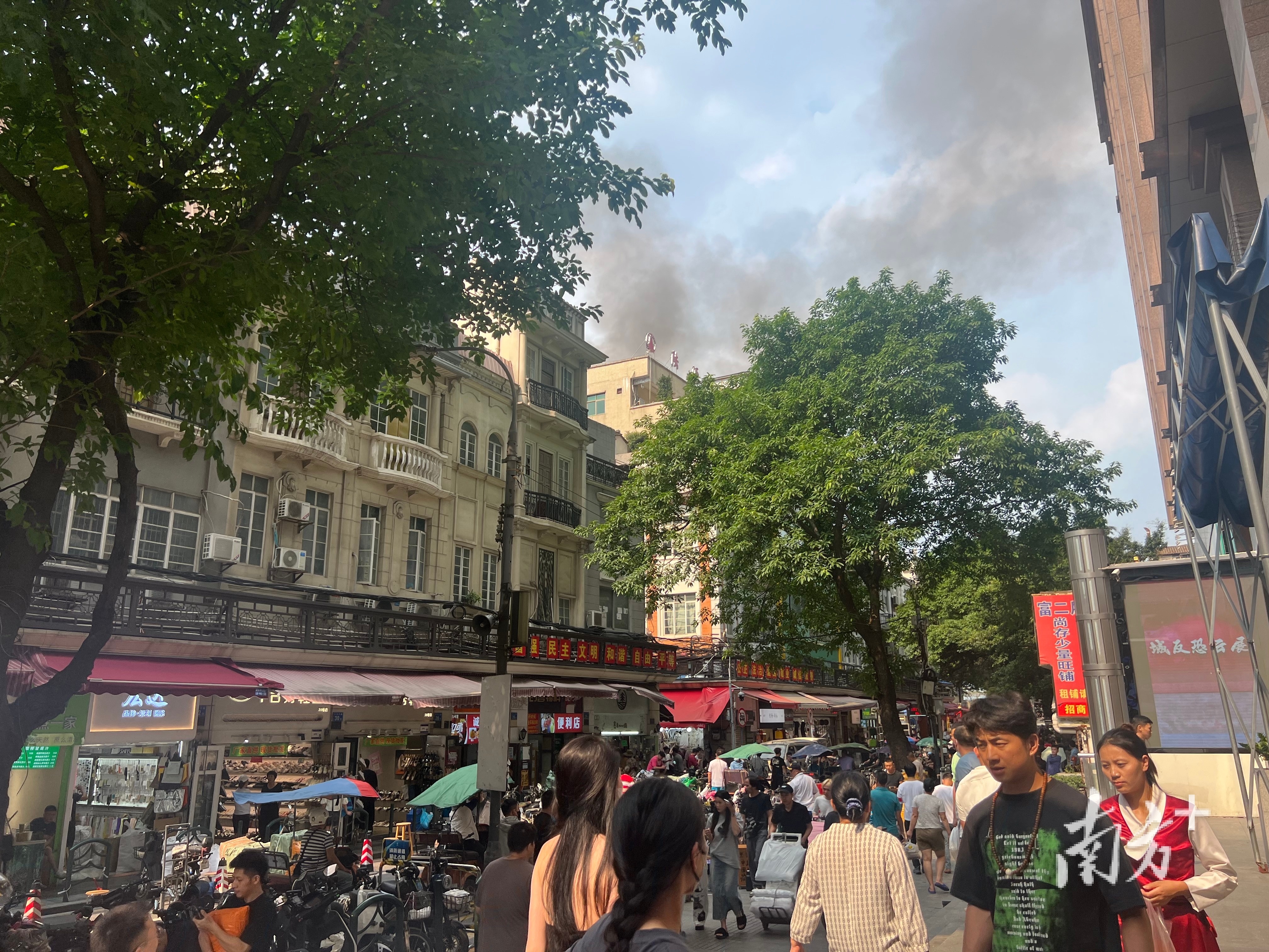 ●现场直击:广州人民南路火灾基本受控,起火市场顶层疑为仓库