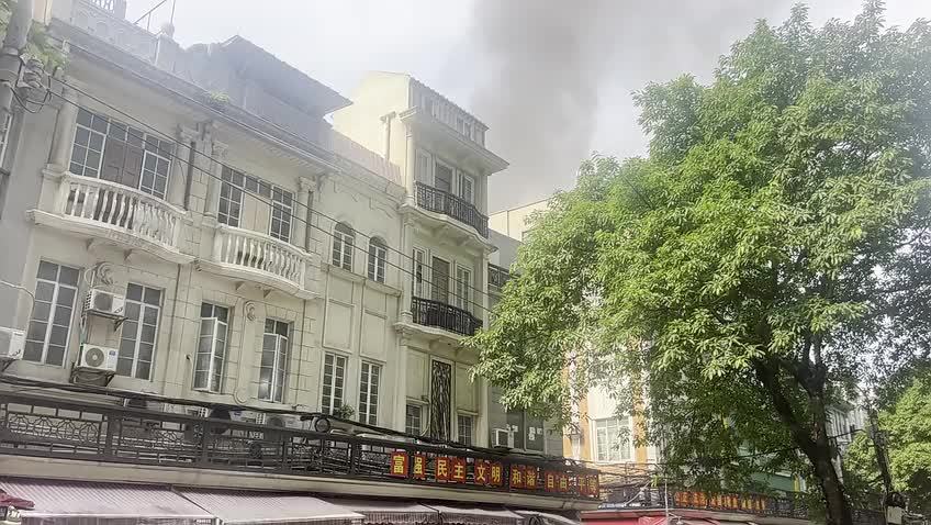 示广州人民南路火灾事故现场又冒出黑烟