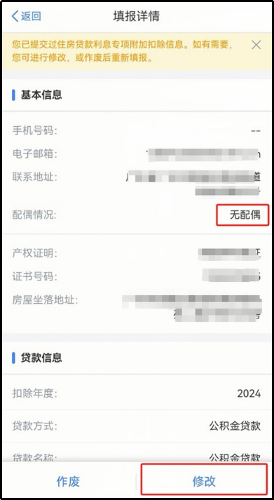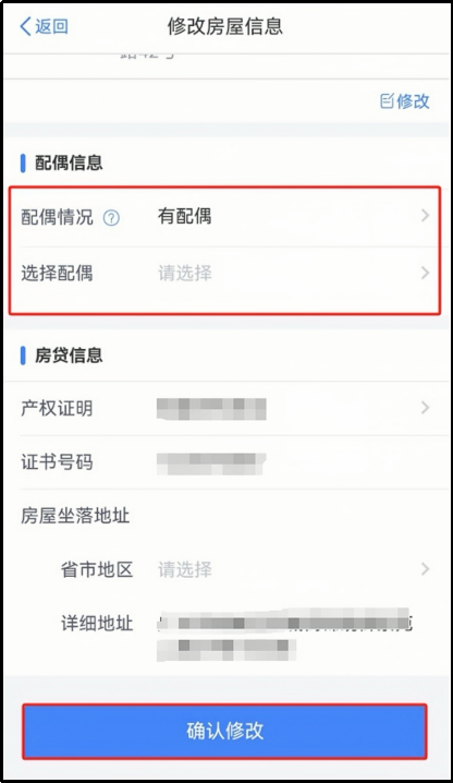 【配偶情况】自动修改为【有配偶】,点击【确认修改】。
