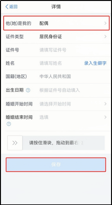 系统会自动获取您之前第一步已在家庭成员添加的配偶信息,