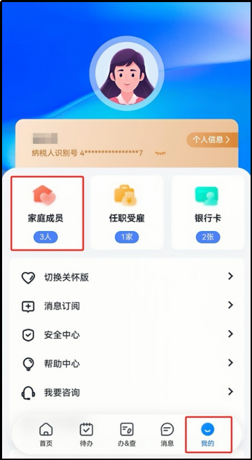 登录个税APP,点击【我的】-【家庭成员】,添加配偶信息。