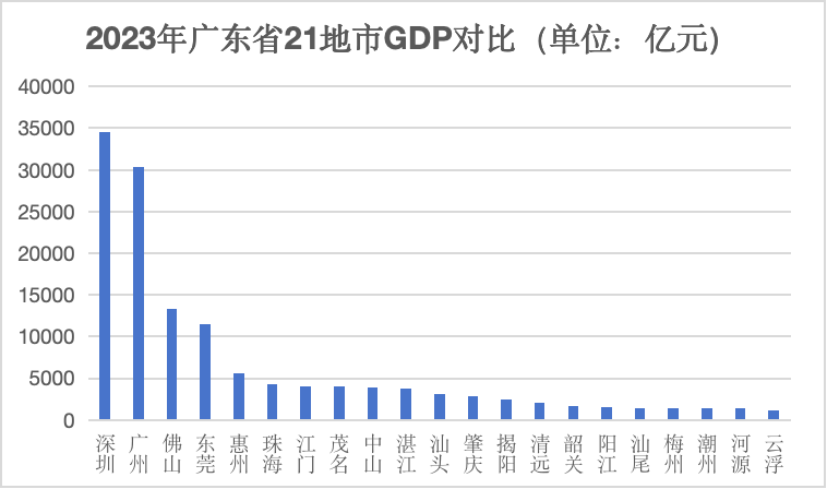 其中,广州、深圳两个中心城市经济总量均超3万亿元,分别达3.04万亿元和3.46万亿元;佛山、东莞两个万亿元城市经济总量继续扩大,分别达1.33万亿元和1.14万亿元;惠州经济总量超5500亿元,珠海经济总量超4200亿元,江门经济总量超4000亿元;茂名经济总量接近4000亿元,揭阳经济总量突破2400亿元,经济总量最小的云浮也突破1200亿元。