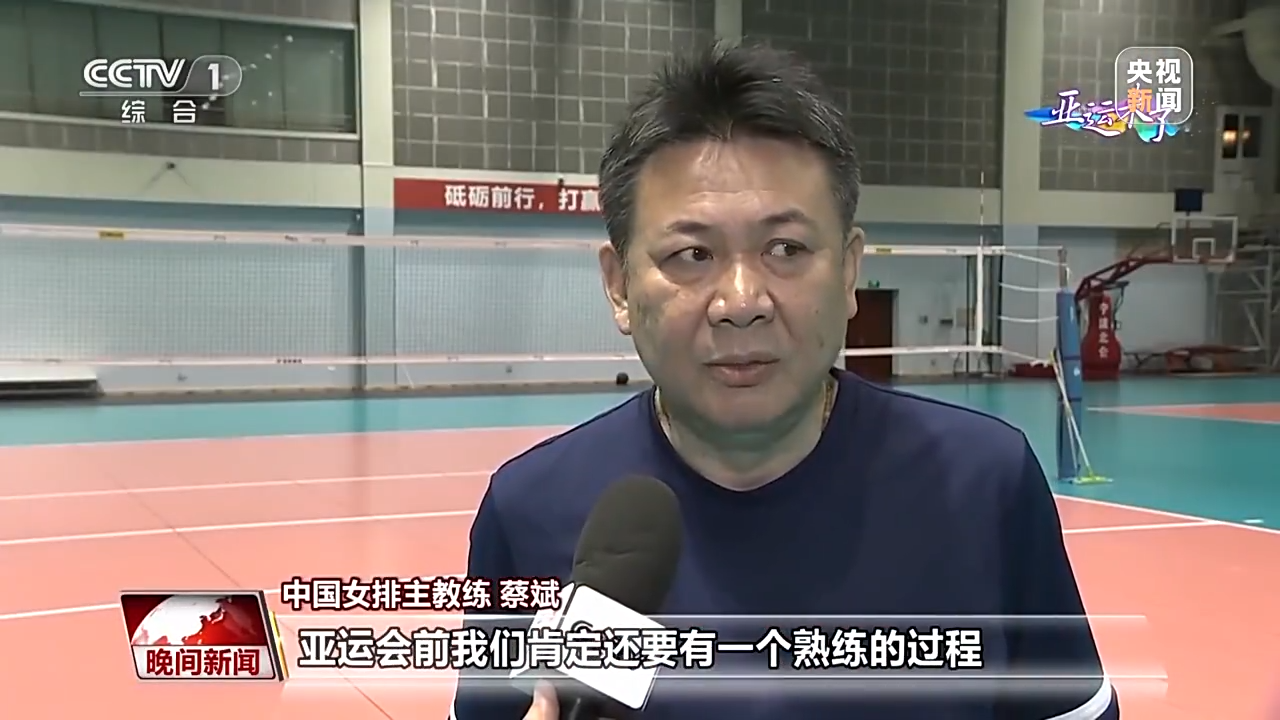 中国女排主教练 蔡斌:其实我们队从去年到今年,也准备了不同欧美球队的打法和亚洲球队的打法。亚运会前我们肯定还会有一个熟练的过程,这一块我们还要把工作做细一点。