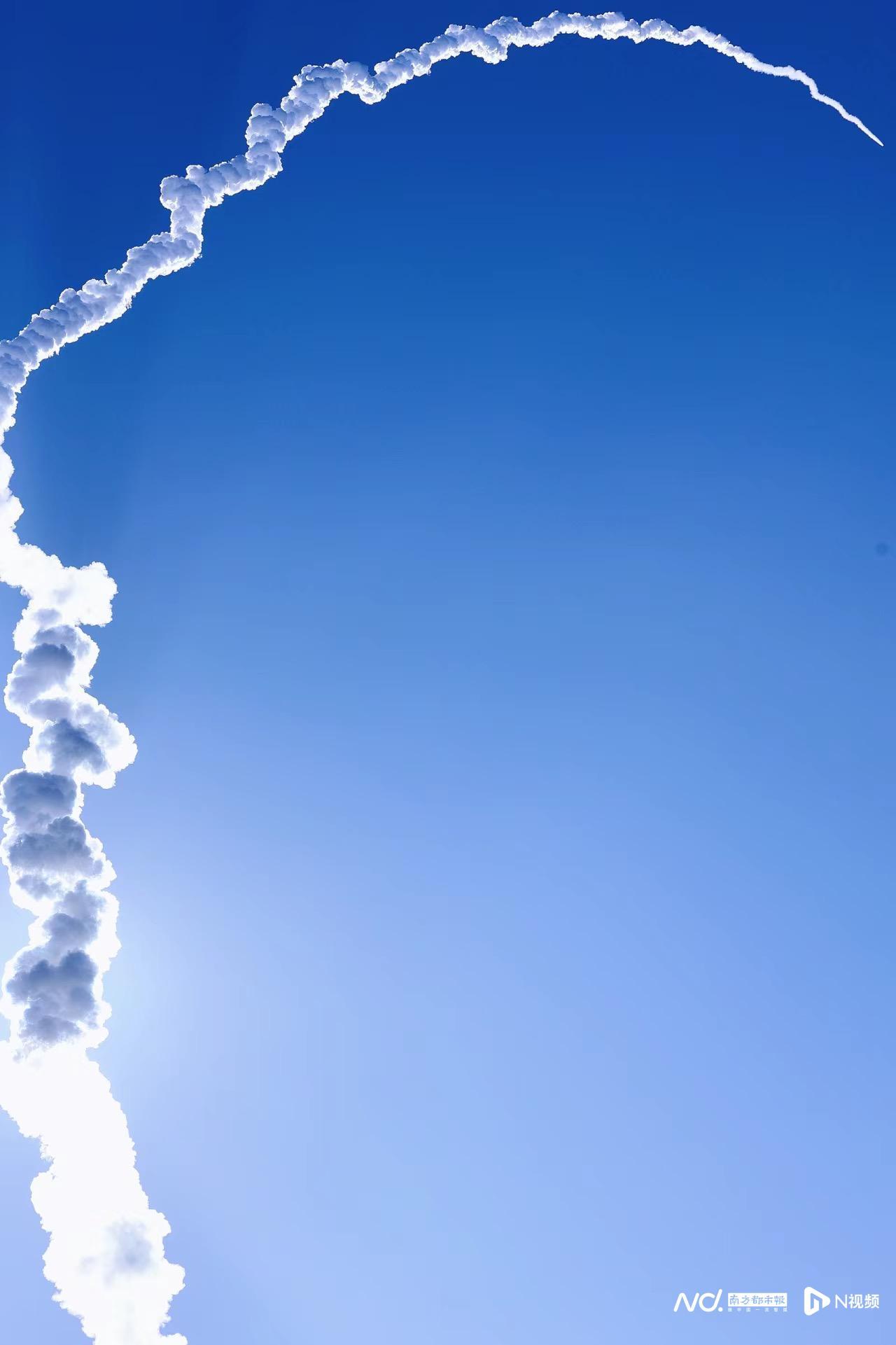 12时03分,零下15℃戈壁滩上,一支身着“吉祥龙”的火箭乘着烈焰黄沙,腾跃而起,直冲万里晴空。