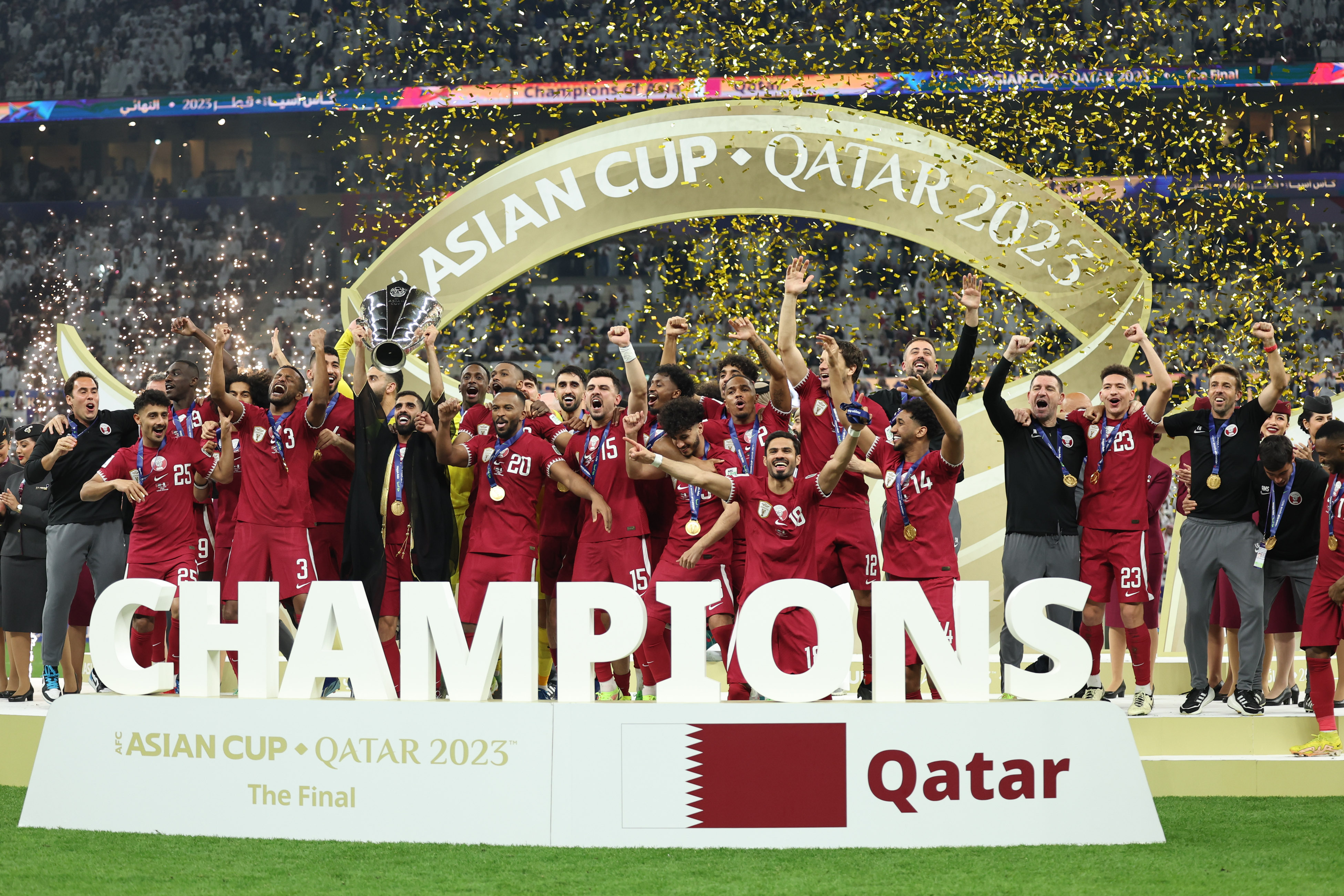 在男足亚洲杯决赛中,卡塔尔队3比1战胜约旦队,夺得冠军。新华社 发