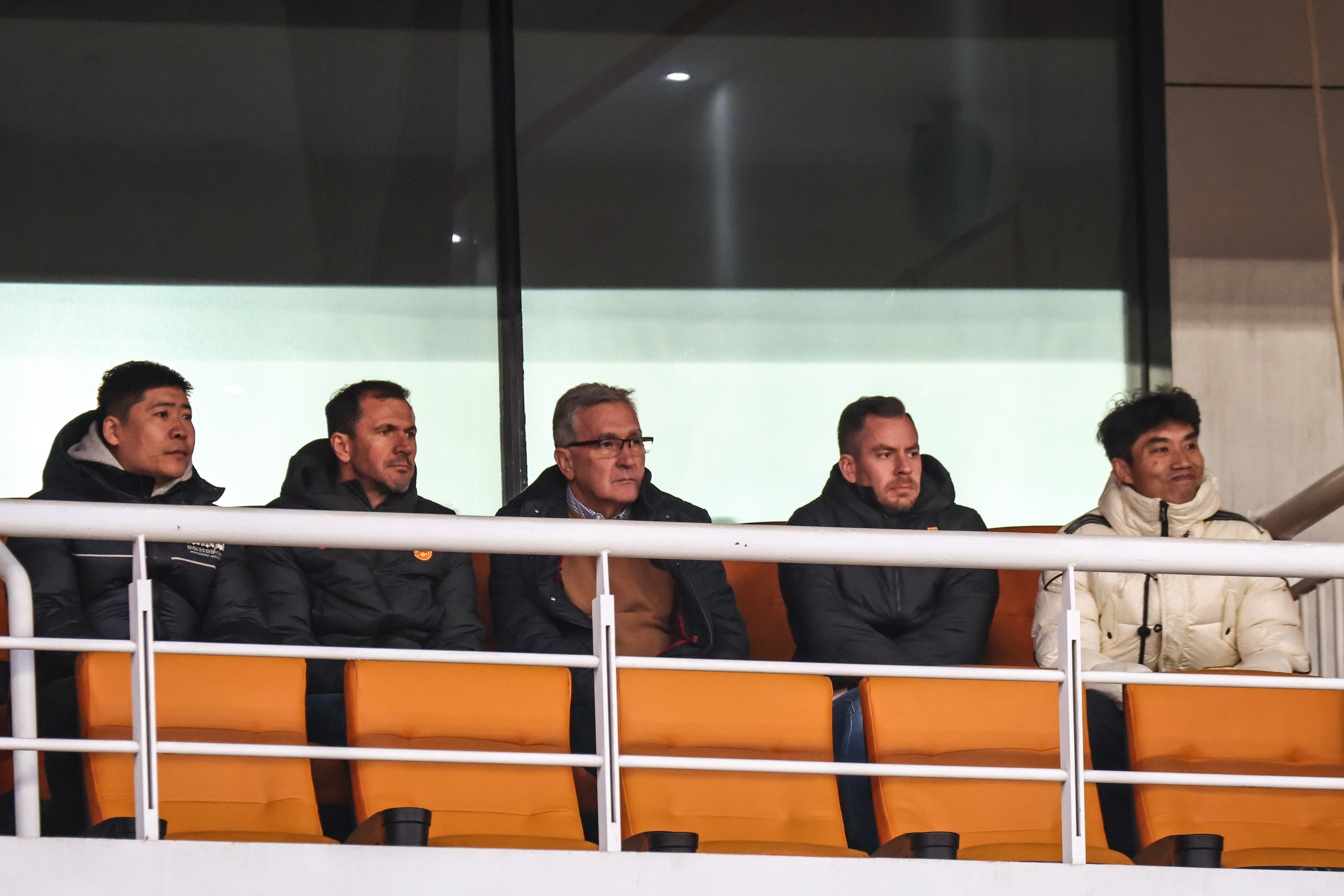 3月6日,2023—2024赛季亚冠联赛四分之一决赛首回合比赛,伊万科维奇(中)在看台观看比赛。新华社 发