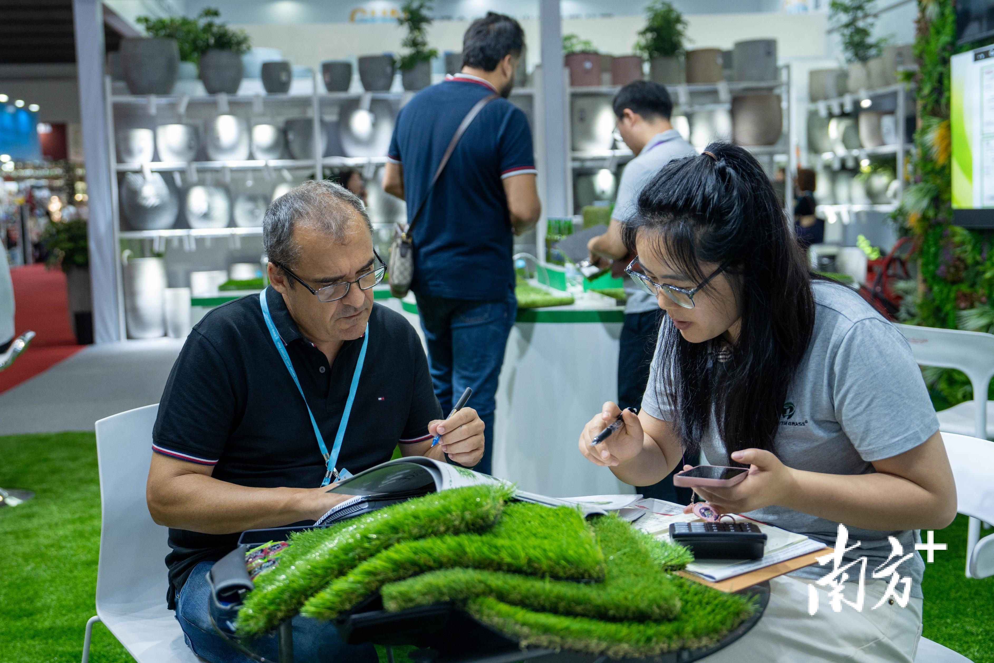 “欧洲消费者愿意为绿色产品溢价。”来自葡萄牙的客商马克格外关注产品的环保性,在听到销售人员介绍“生产环节还使用了太阳能供电”后,他立刻拍照记录,并预约接下来工厂参观行程。