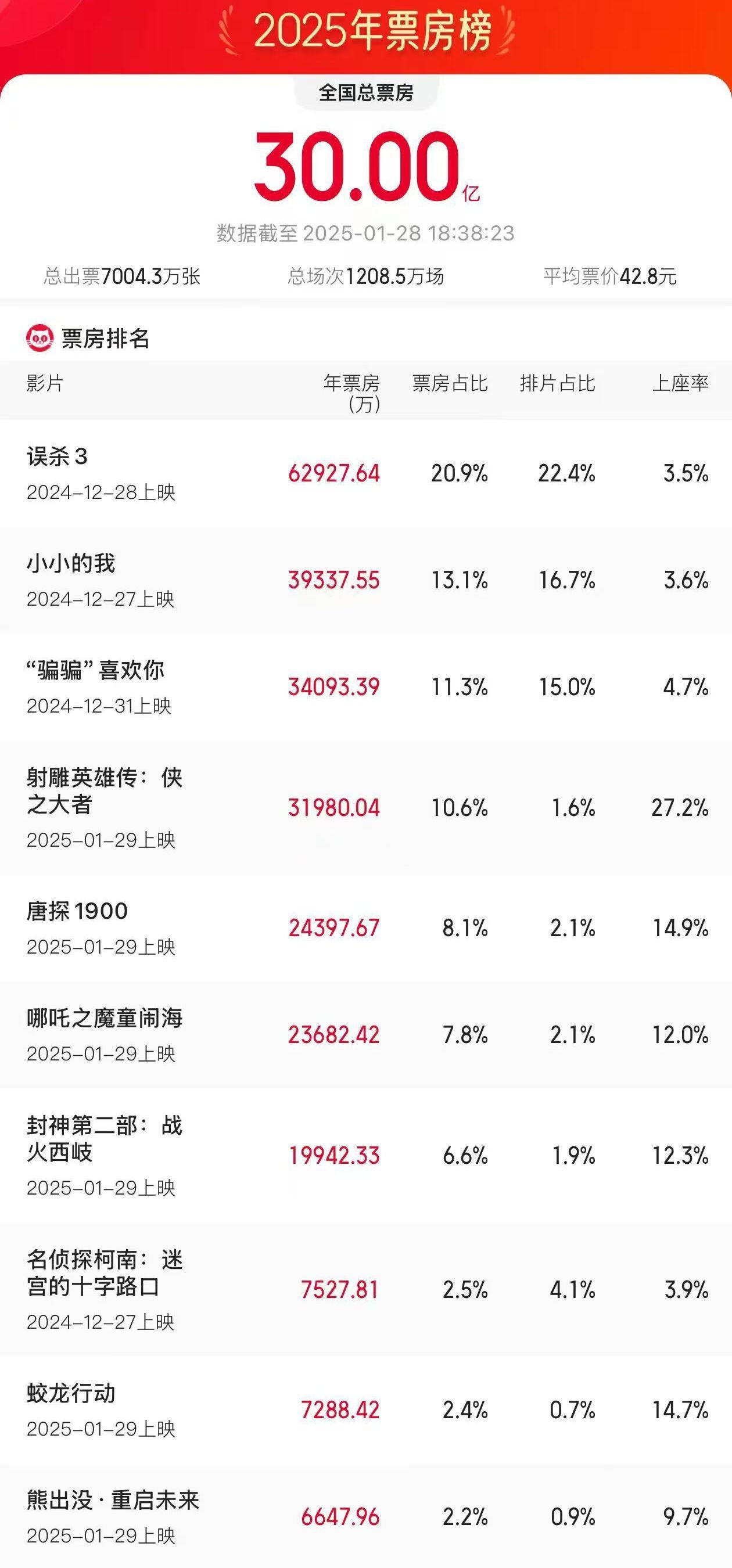 2025年度票房(含预售实时)