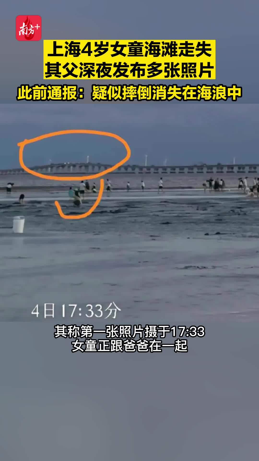 上海4岁女童海滩走失,其父深夜发布多张照片,此前通报:疑似摔倒消失在海浪中