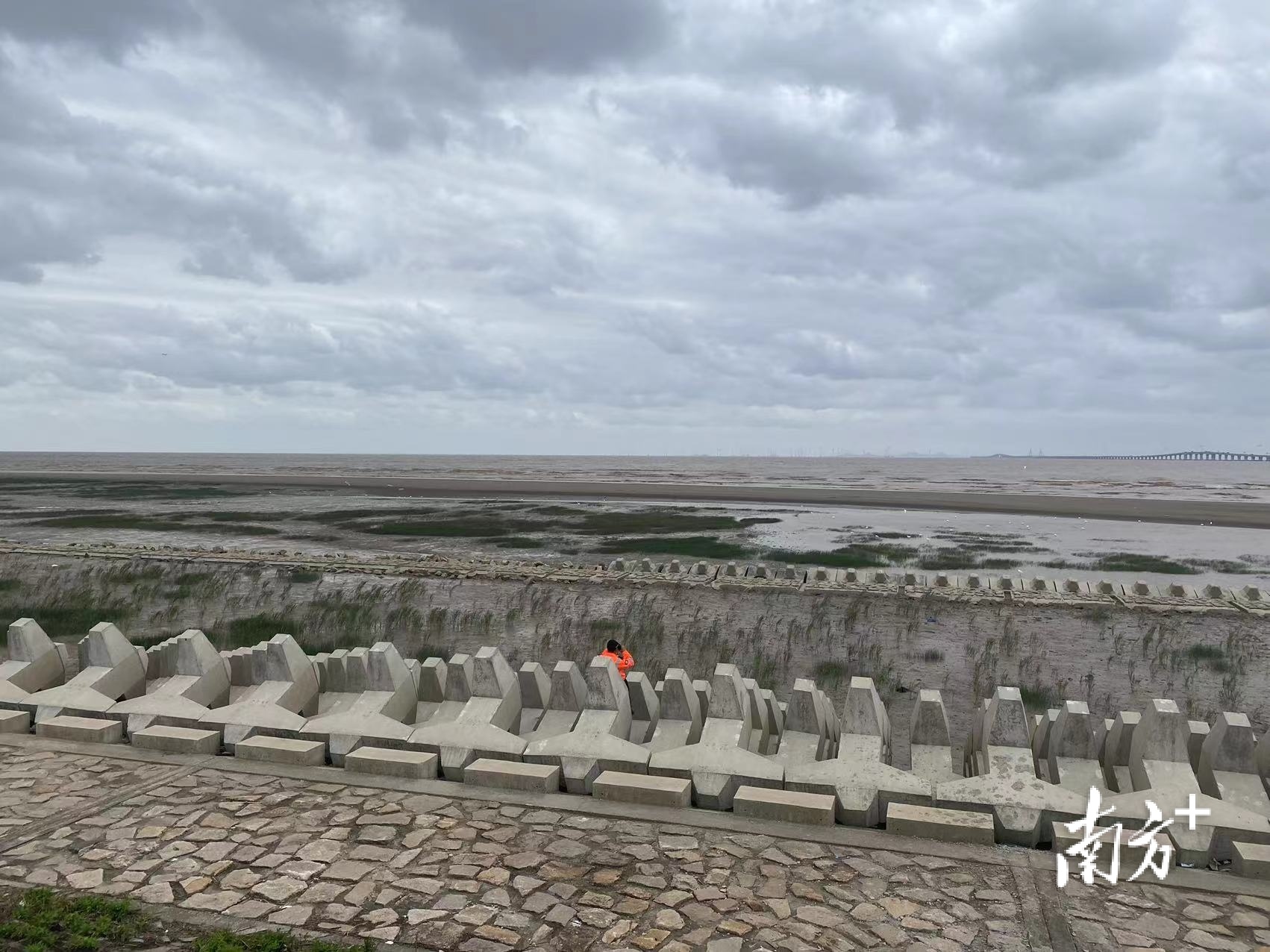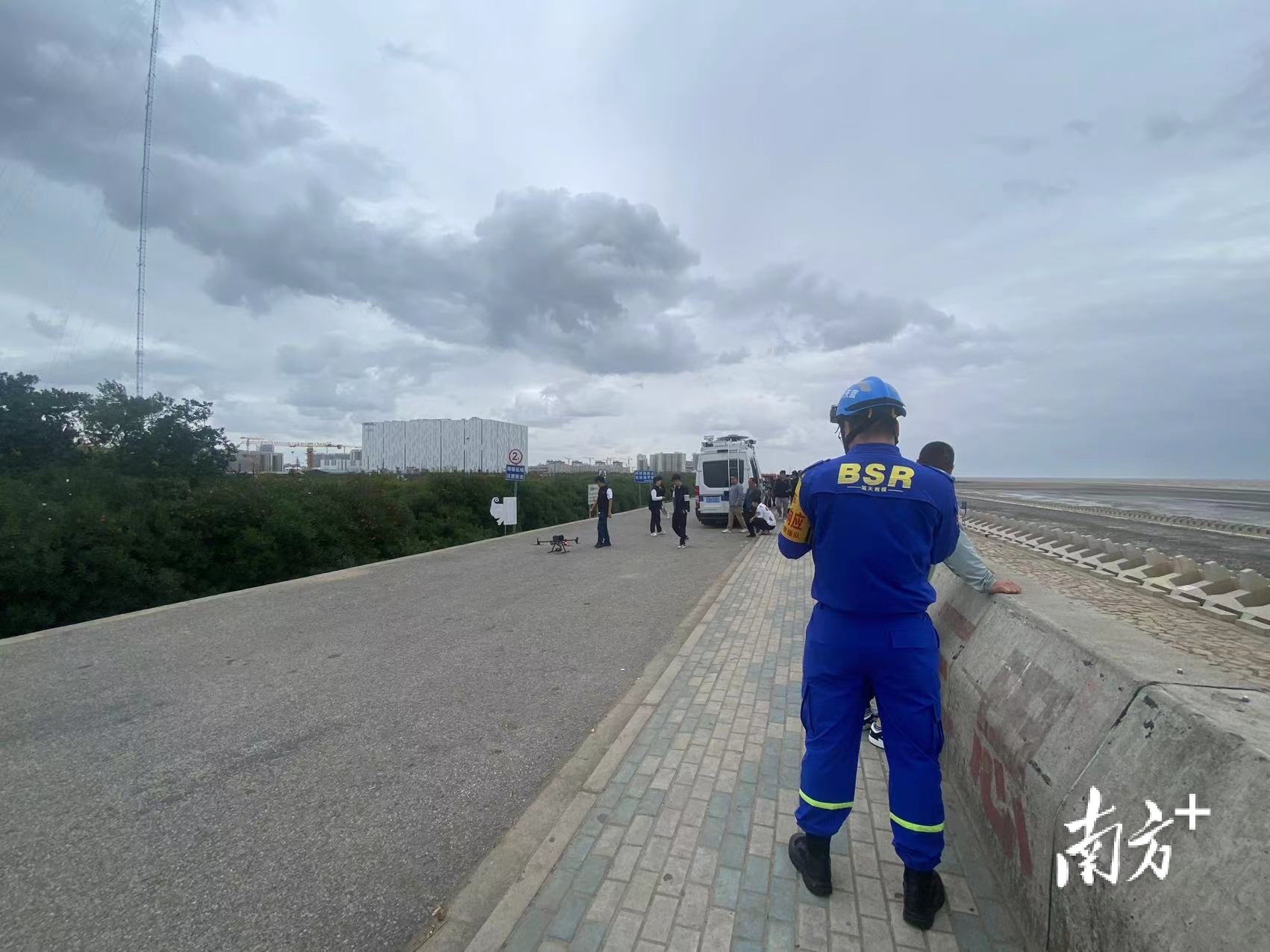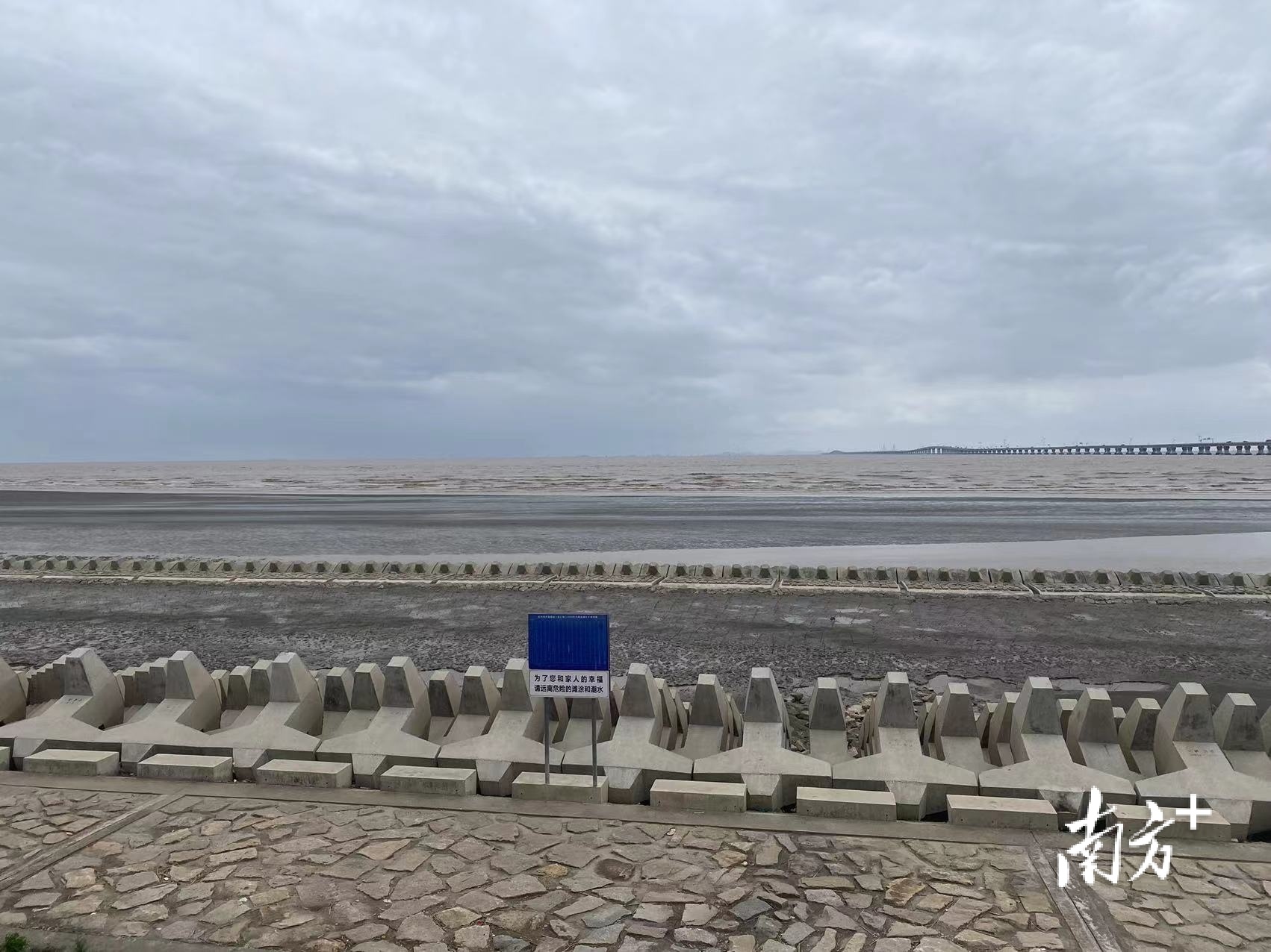 现场治安巡逻人员告诉南方+记者,此处区域是一处开放区域,平日里有不少游客前来游玩打卡,也有不少人从堤岸下到滩涂玩水、抓螃蟹。