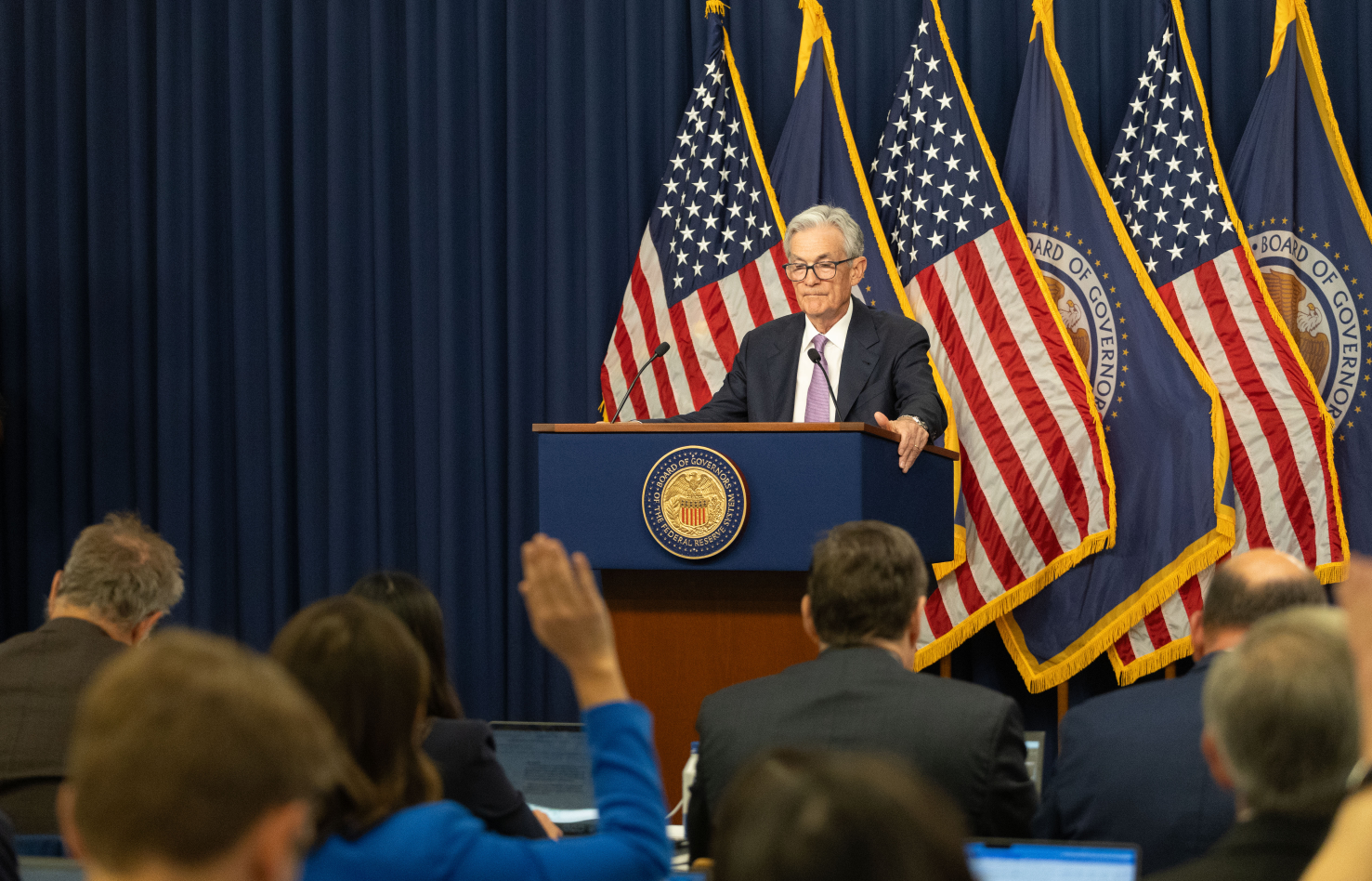 9月18日,美国联邦储备委员会主席鲍威尔在华盛顿出席记者会。新华社记者 胡友松 摄