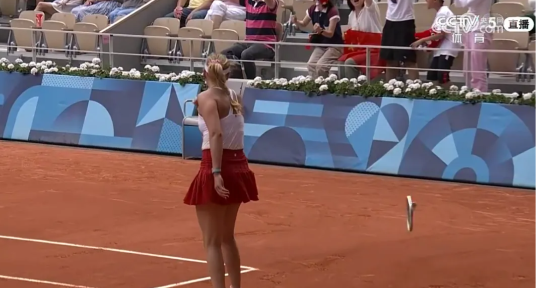 在关键的第8局,郑钦文连续出击,拿到2个破发点,对手维基奇被打到心态失衡,怒摔球拍。