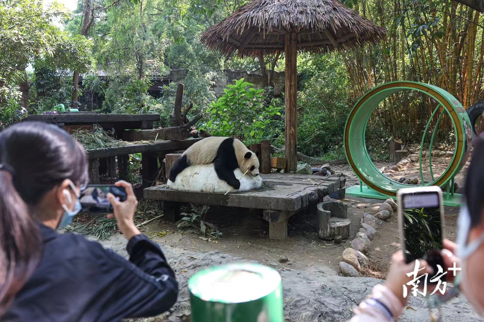 来自四川成都的武女士,则紧紧抓住节假日的尾巴,在前一天赶到广州,先去了长隆水上乐园,今天来了野生动物世界,带小朋友一起喂动物,“小朋友喜欢看《动物世界》,而长颈鹿也比较亲近人,今天算是真正走进了动物世界,他非常开心”。