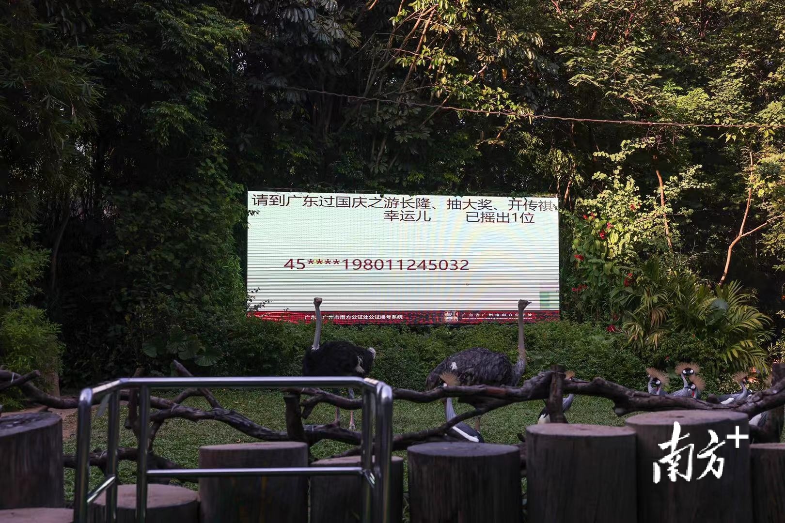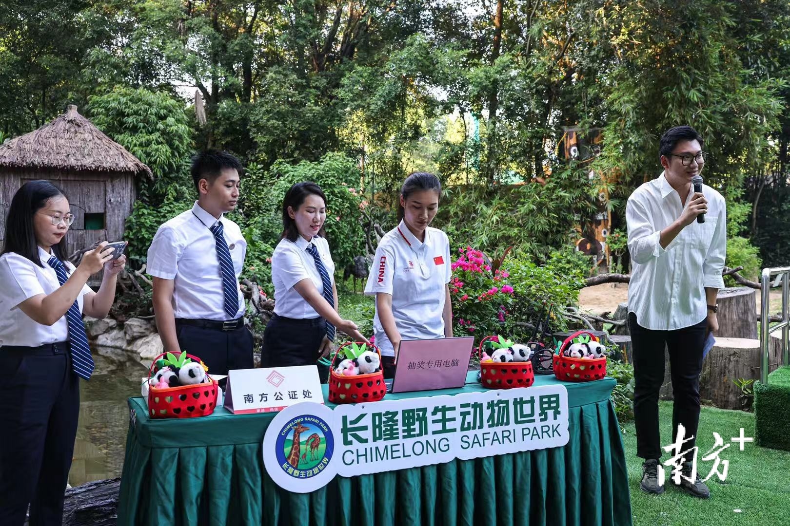 10月7日,国庆假期最后一天。由南方+客户端和触电新闻客户端联合主办、长隆集团和广汽传祺共同协办的“请到广东过国庆之游长隆、抽大奖、开传祺”活动,在长隆野生动物世界“发现非洲剧场”举行。主办方特别邀请到第47届世界技能大赛时装技术项目金牌得主周芹妃担任活动抽奖嘉宾,送出最后一份“传祺GS3影速累计10年使用权”兑奖券。