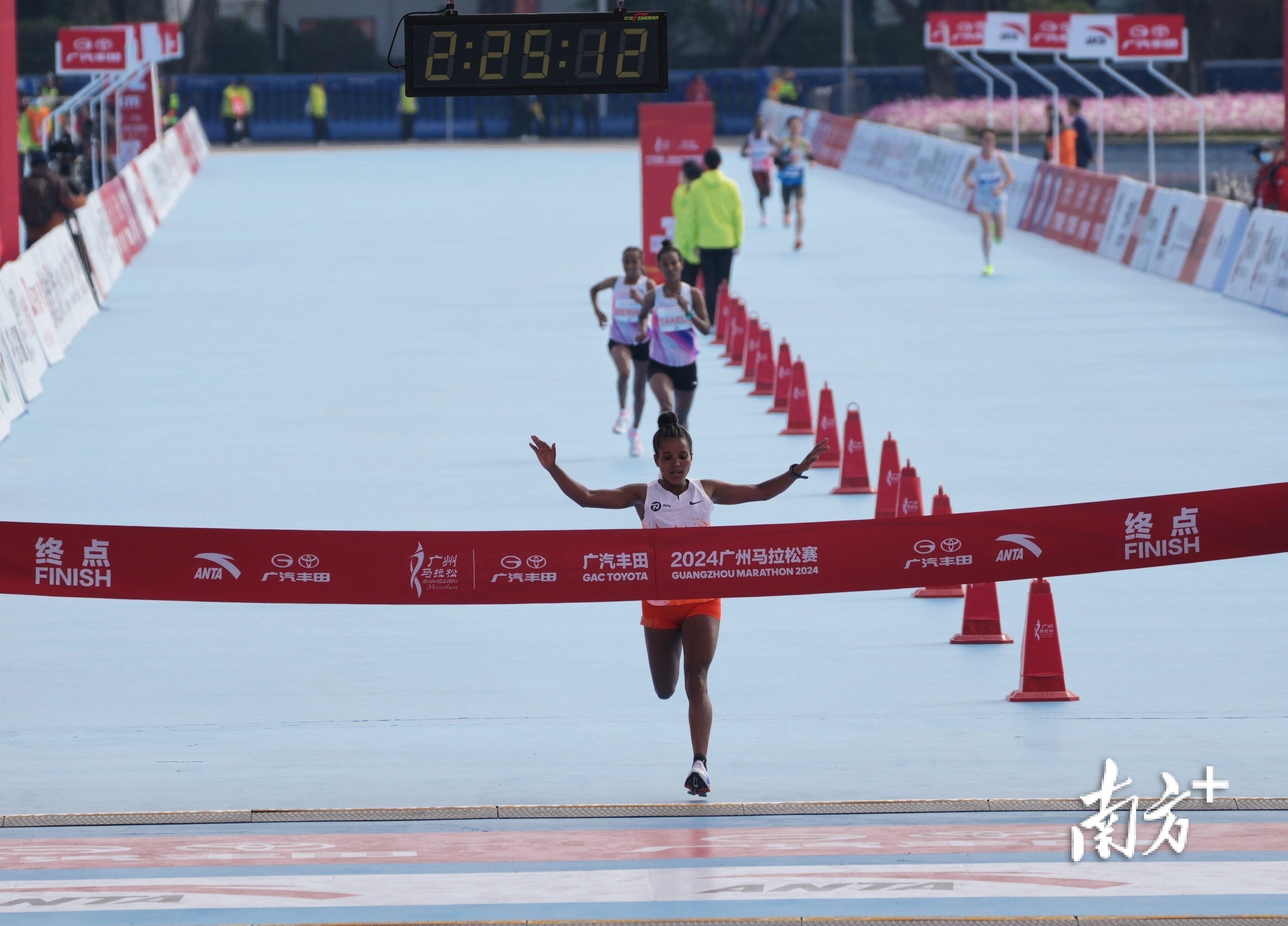 女子方面,埃塞俄比亚选手包揽前三,安奇亚莱姆•海马诺特•维宾赫夺冠,成绩是2小时25分13秒。