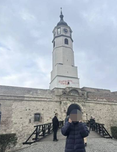 塞尔维亚著名钟楼遭中文涂鸦,中使馆提醒中国公民文明出行