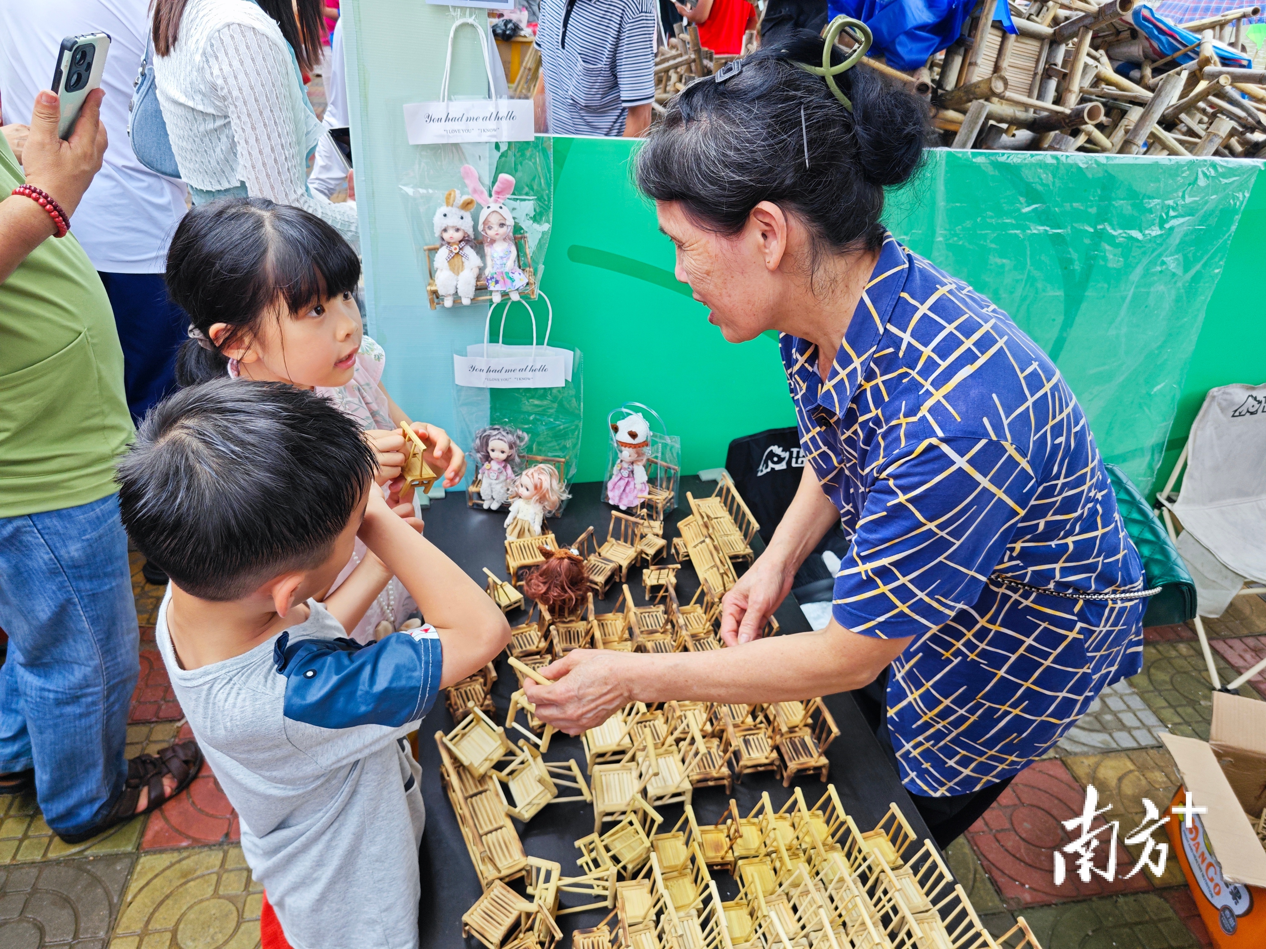 展销会上,广州美术学院师生带来的竹木器优秀作品非常吸引眼球。这些作品不仅体现了广美师生的精湛技艺,更将竹木器赋予了艺术价值和品牌价值;在部分竹木器摊位上,各类制作精美的“迷你”桌椅不到手掌大小,与各类玩偶娃娃共同摆放出各种造型,也吸引了许多家长和小朋友的驻足。“竹木器不应该仅仅是一种实用物品,更应该发掘其文化价值、艺术价值,提高产品附加值。”阳春市有关负责人表示,阳春竹木器正在向艺术化、工艺化的多元方向创新发展,此次邀请广州美术学院师生参展,传达的就是希望推动竹木器产业与文化艺术深度融合的讯号。