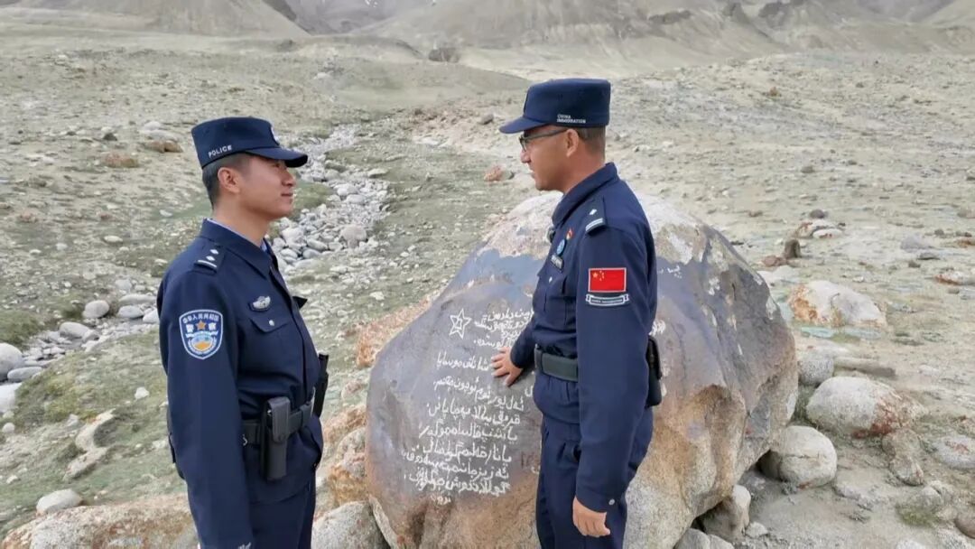在瓦罕走廊深处有一块特殊的石头,上面刻着一行字:“为我中华之繁荣昌盛,卫国戍边四十余载,爱祖国,一辈子跟党走,子孙后代定来接班”。这是老一代戍边人卡德尔·阿布力克木多年前刻下的家训。他是电影《冰山上的来客》主人公阿米尔的原型之一,也是排依克边境派出所副所长肖恭尼·龙吉克的祖父。