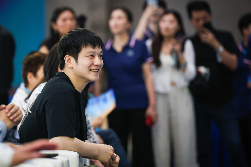 2025年7月18日,樊振东来到杨浦区复兴岛船台Park,“做客”上海市“国球三进”系列争霸赛暨“韵动杨浦·秀出来”乒乓球选拔赛,引燃了现场球迷的热情。解放日报 图