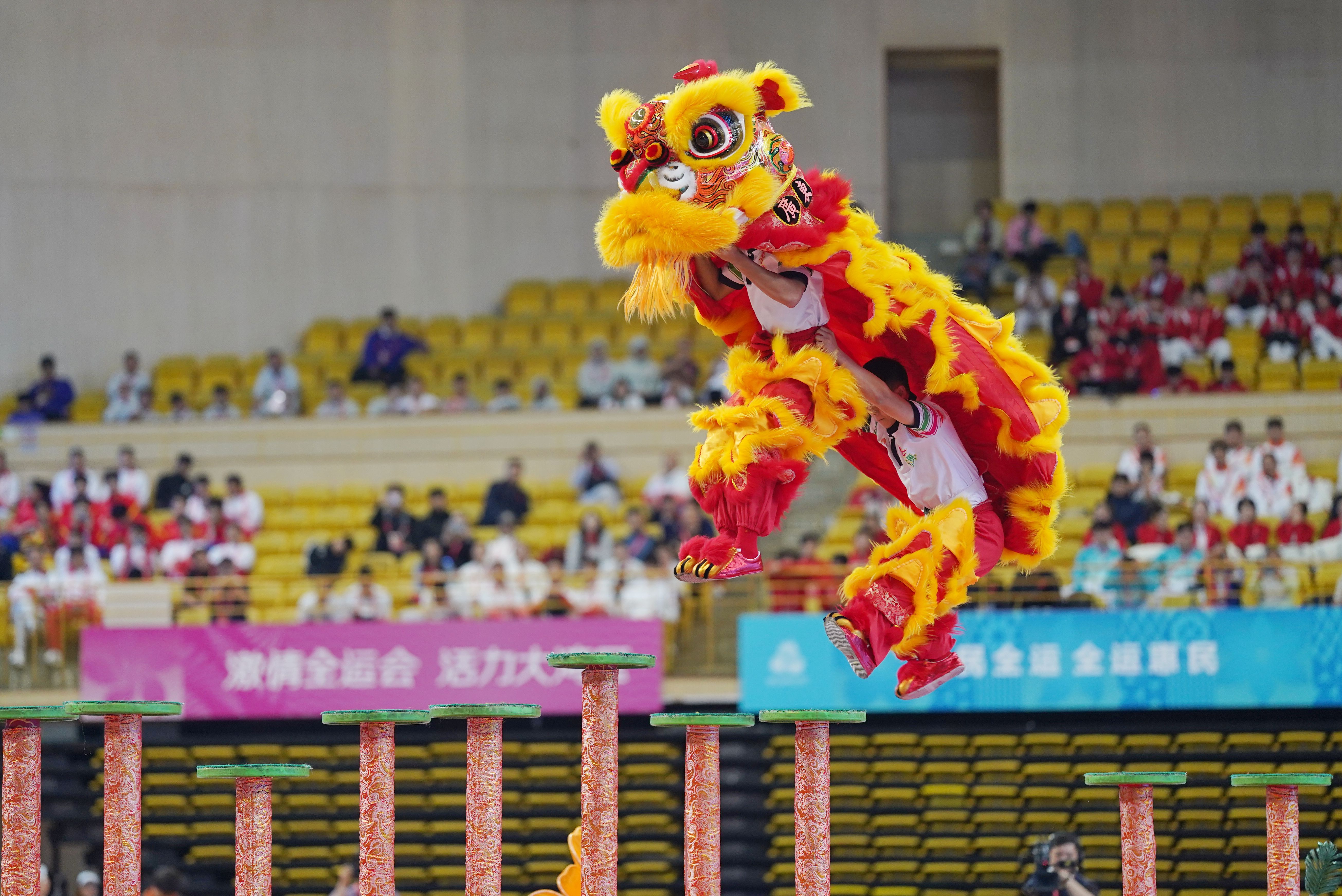 11月11日下午,十五运会群众展演舞龙舞狮项目决赛举行。廖明璨 戴嘉信 摄