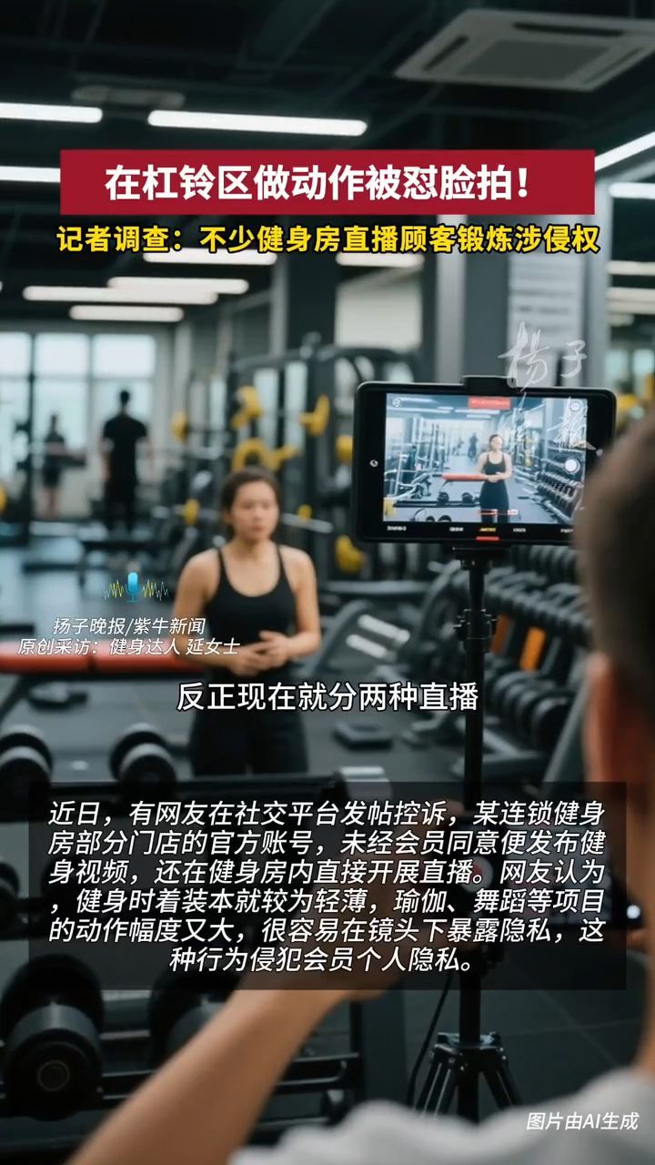 在杠铃区做动作被怼脸拍!记者调查:健身房直播顾客锻炼现象普遍,涉嫌侵权