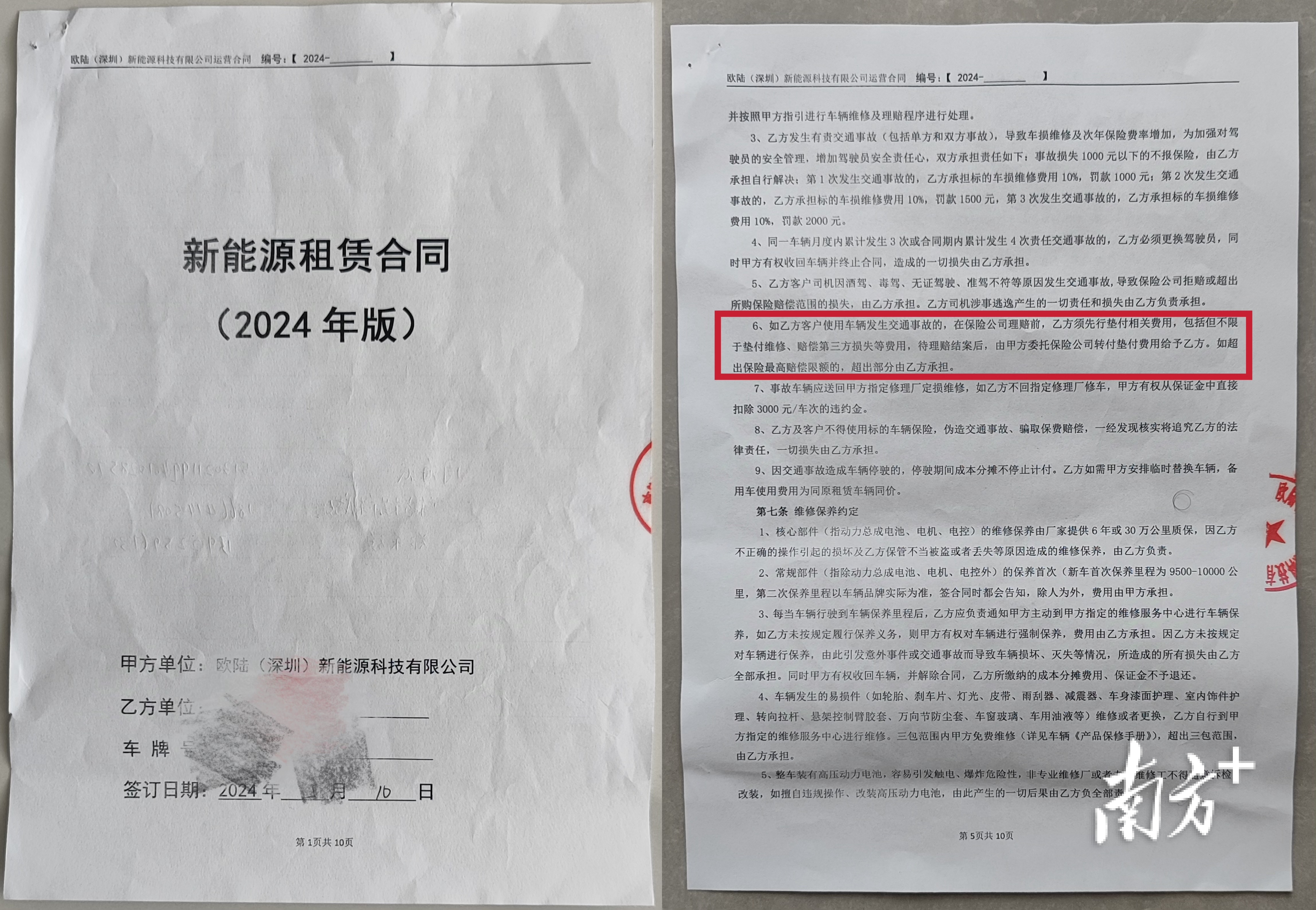阿涛和网红司机联系后,最终在对方的介绍下前往深圳市龙华区一家名为欧陆新能源的货车销售点,在销售人员的力推之下,阿涛以每月6300元租金签下为期一年的宇通新能源货车租赁合同,开始了平台接单拉货生意。