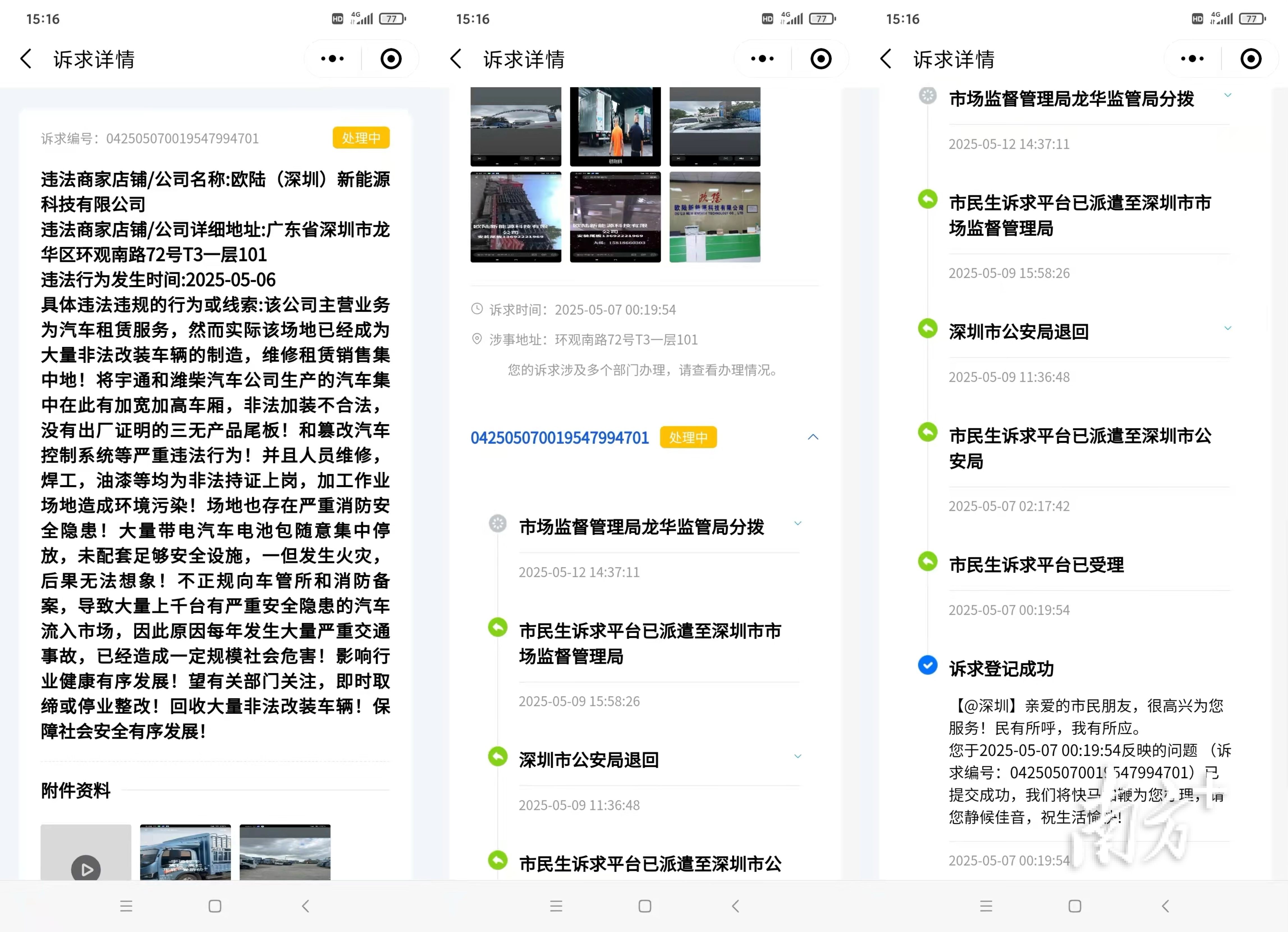5月14日下午,记者将租售货车公司违规改装货车等相关执法线索向深圳市交通运输局龙华管理局和深圳市市场监督管理局龙华监管局反映,有关部门的工作人员表示,会对此事进行研判分析,待核查清楚后或采取联合行动。