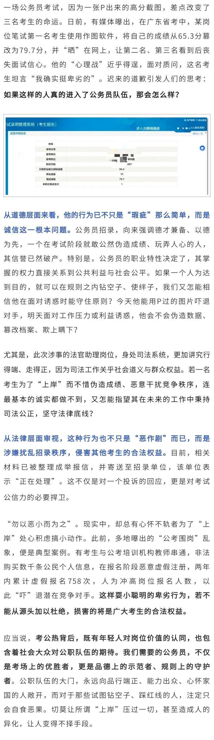 考公P高成绩吓退对手?这样的人当了公务员会咋样…