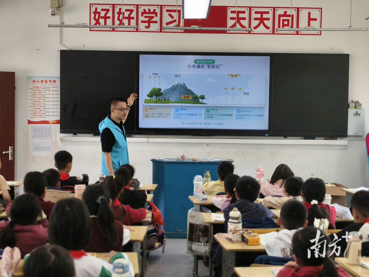 在雷岭镇双溪小学,水文志愿者利用课间时间开设“水知识微课堂”,以通俗语言向学生讲解水资源循环和节水常识,并通过有奖问答等形式与学生互动。
