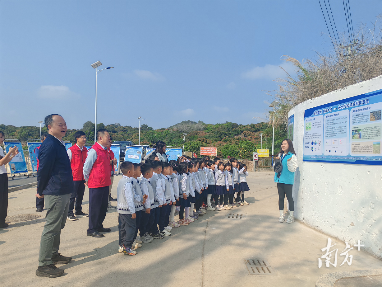 活动以“科普+互动+巡河”模式,将水利治理成效“搬”到河岸碧道,把科普课堂开进校园。现场设置了图文展板,呈现南水北调东线、珠三角水资源配置工程等重大水利项目,系统解读韩江流域在区域水安全格局中的核心地位:既是水资源调配“大动脉”,也是生态廊道“生命线”。