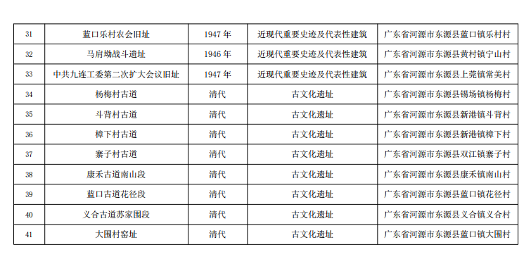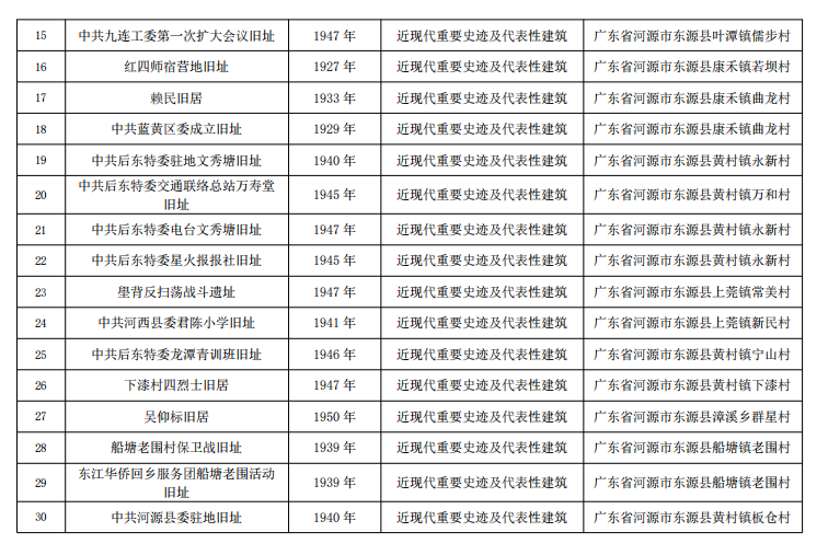 东源是东江地区重要革命根据地,此次新核定公布的10余处近现代重要史迹为红色历史提供珍贵实物佐证。壆背反扫荡战斗遗址、中共后东特委电台及报社旧址等分布于上莞、黄村等地的红色遗址,串联起东江革命斗争脉络,是传承红色基因的重要载体。
