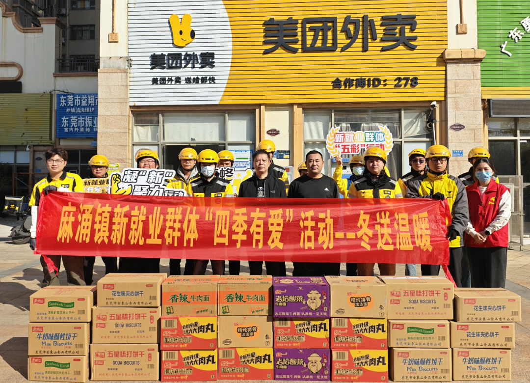 为持续推进全域文明建设,加强对新就业形态劳动者的关心关爱,近日,麻涌镇“两新”组织党委联合镇社会工作事务中心开展“冬送温暖·情暖小哥”——新就业群体冬送温暖活动,为冒寒奔波在一线的外卖骑手、快递员等送上暖心物资。