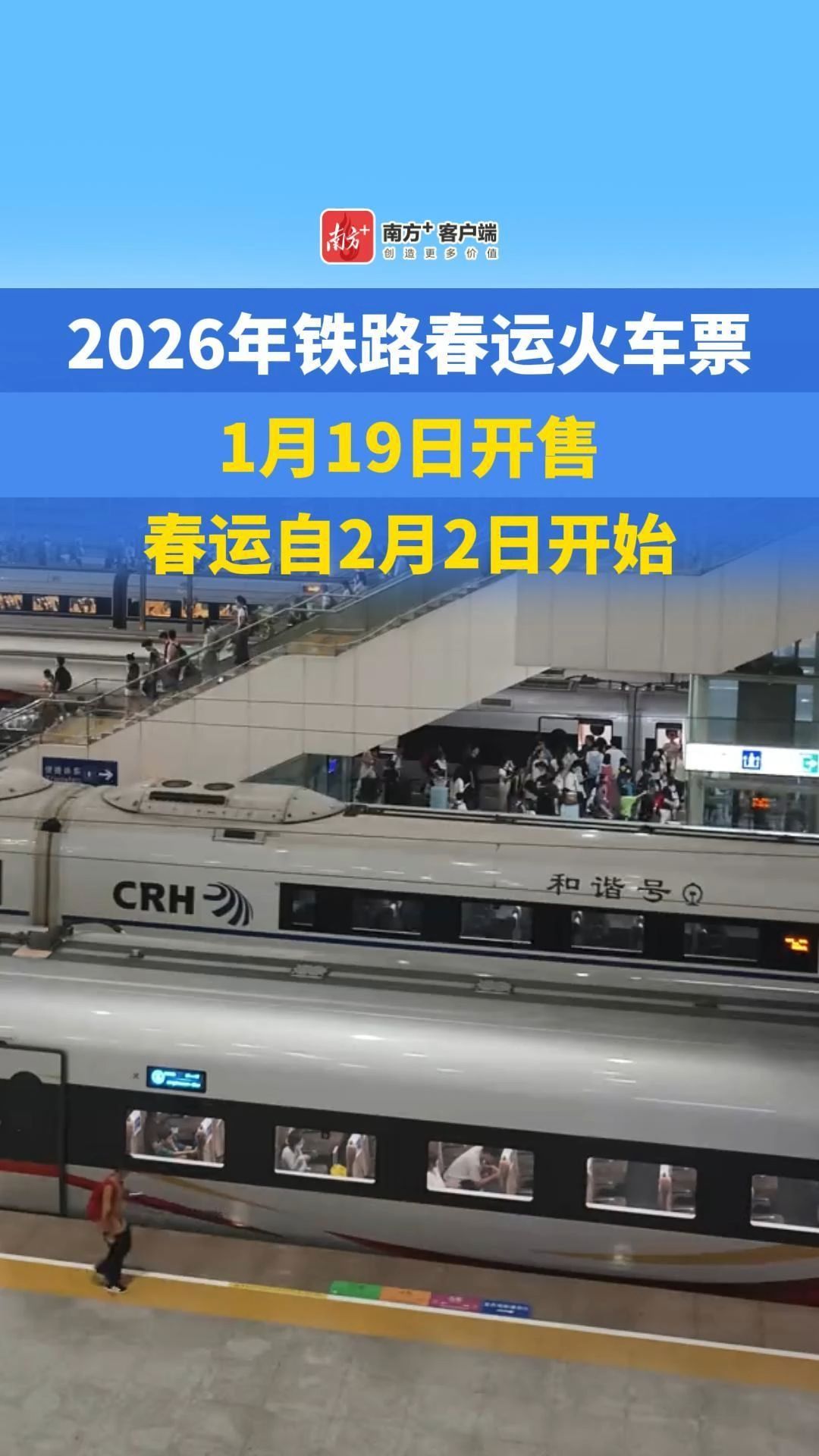 2026年铁路春运火车票1月19日开售,春运自2月2日开始