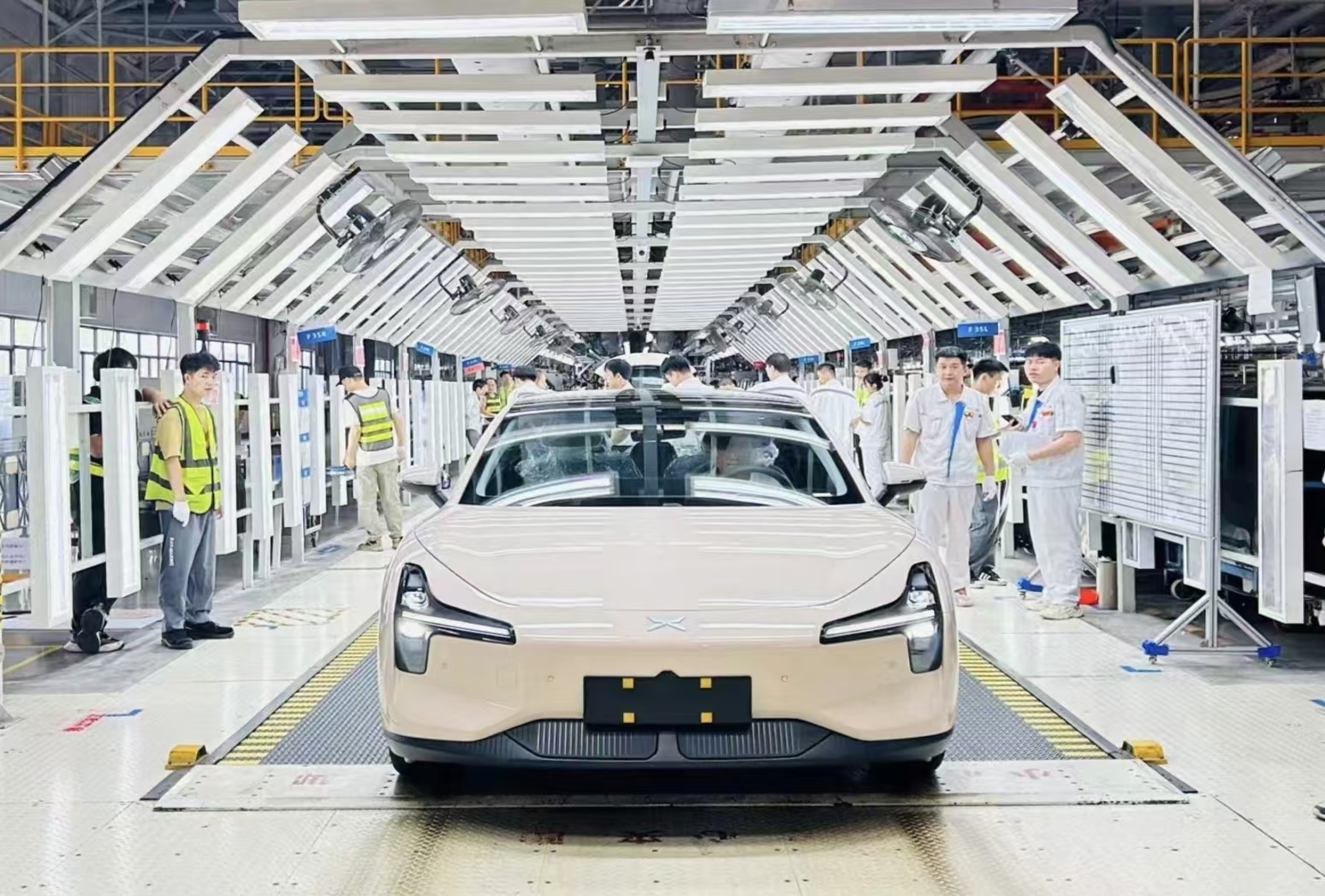 小鹏汽车新车型 MONA M03 在肇庆组装车间下线。 资料图片