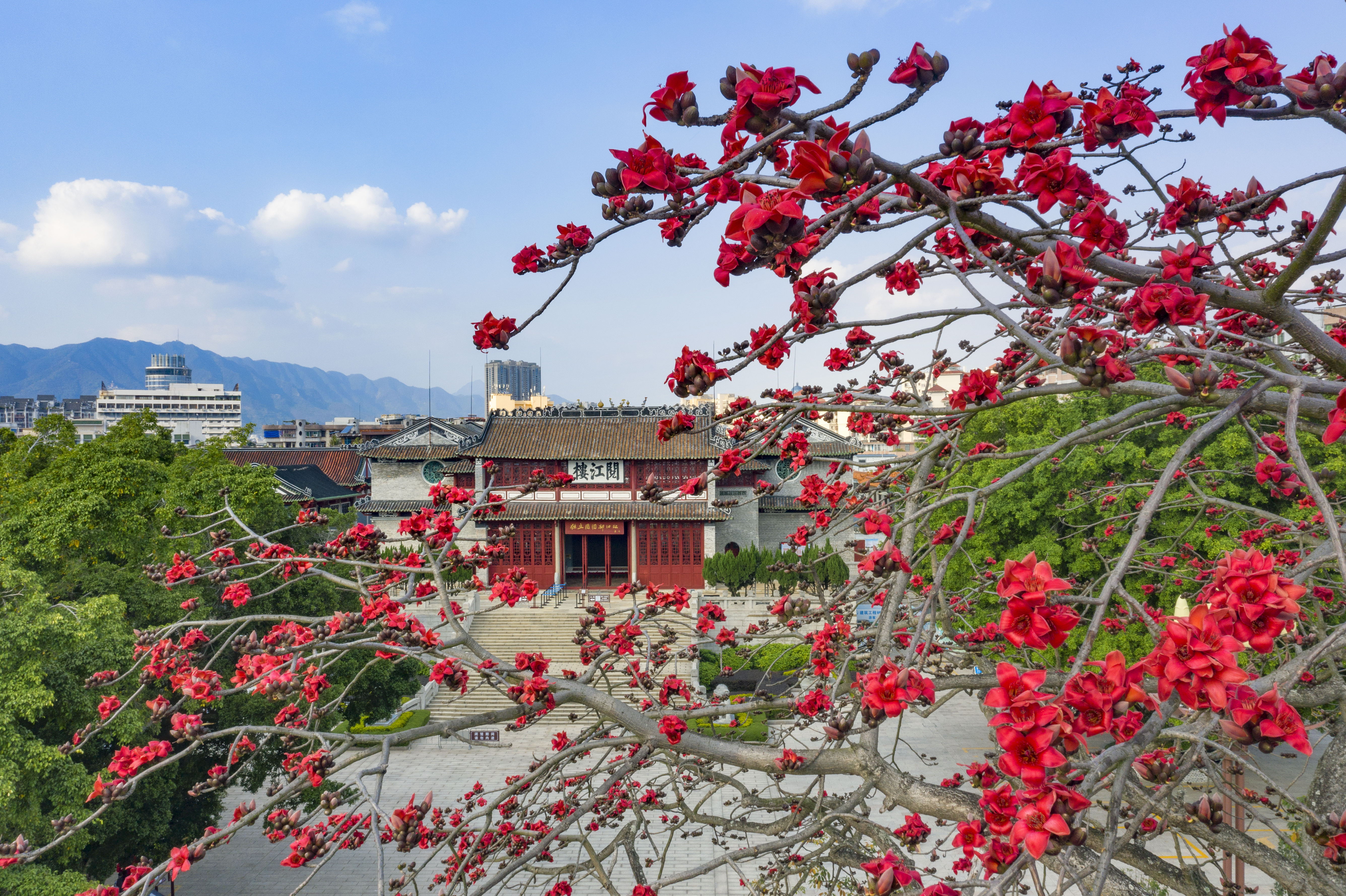 肇庆阅江楼前,一朵朵火红的木棉花开满枝头。罗馨如 摄